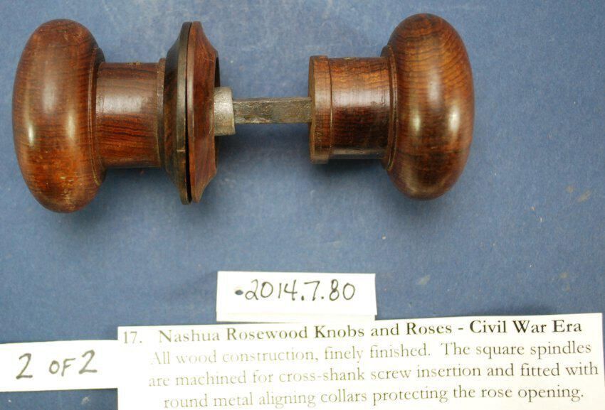 Comments: Probably rosewood. Pair of doorknobs, pair of rose escutcheons.Lexicon
