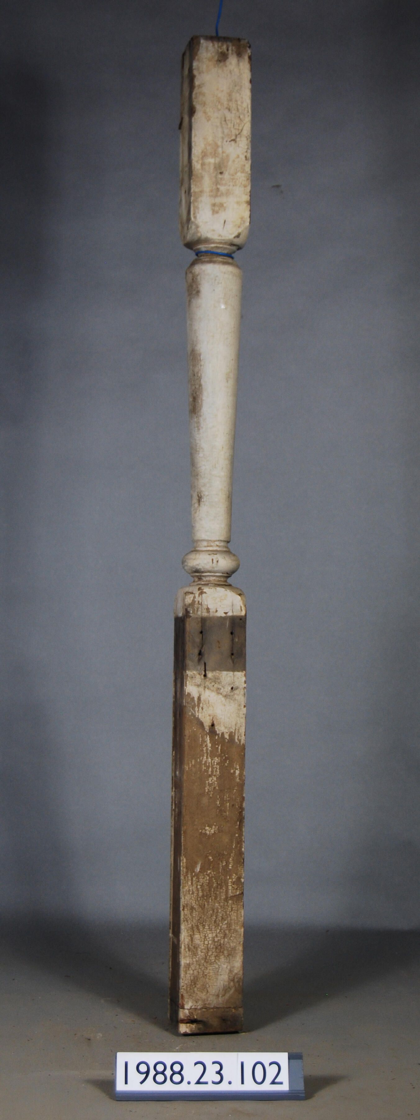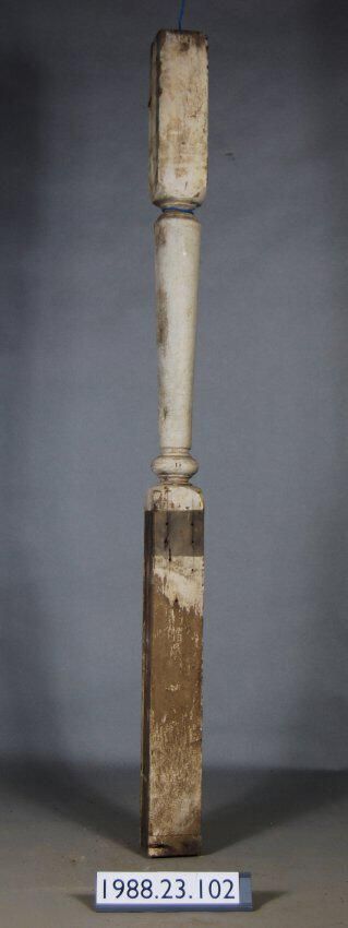Exterior wood baluster shaped post turned from single piece of timber. Has banded ornamentation. Painted beige. Manufacturer: Place of Manufacturer: Design motif: Style: Finish: Painted