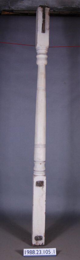 Exterior wood baluster shaped post turned from single piece of timber. Has banded ornamentation. Painted beige. Manufacturer: Place of Manufacturer: Design motif: Style: Finish: Painted