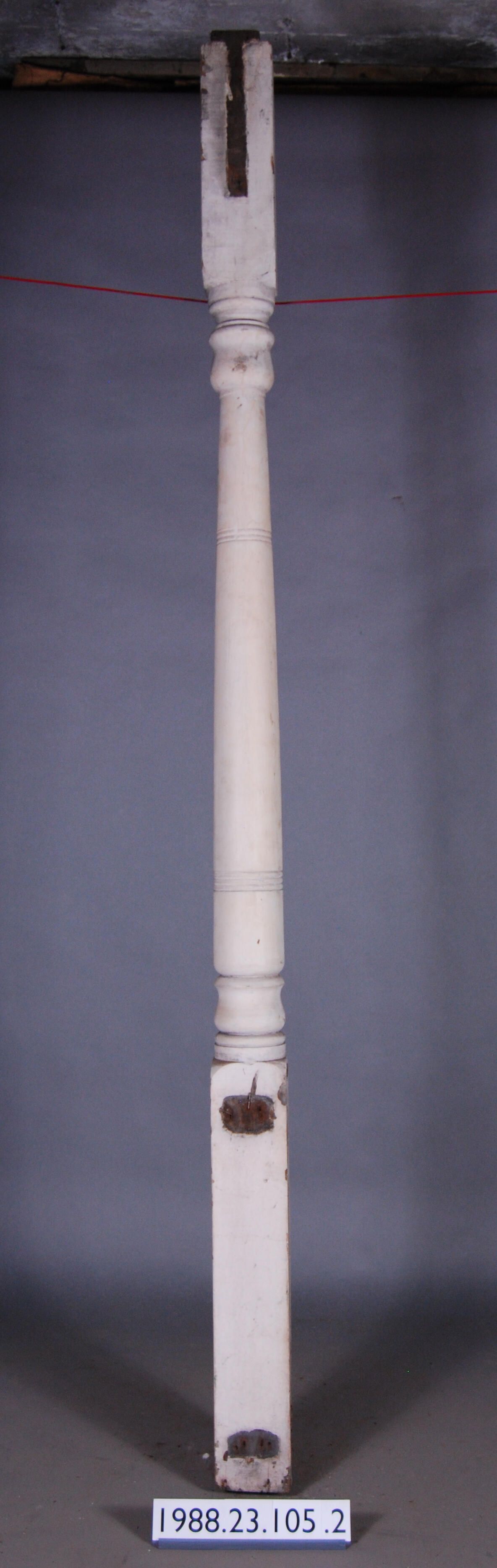 Exterior wood baluster shaped post turned from single piece of timber. Has banded ornamentation. Painted beige. Manufacturer: Place of Manufacturer: Design motif: Style: Finish: Painted
