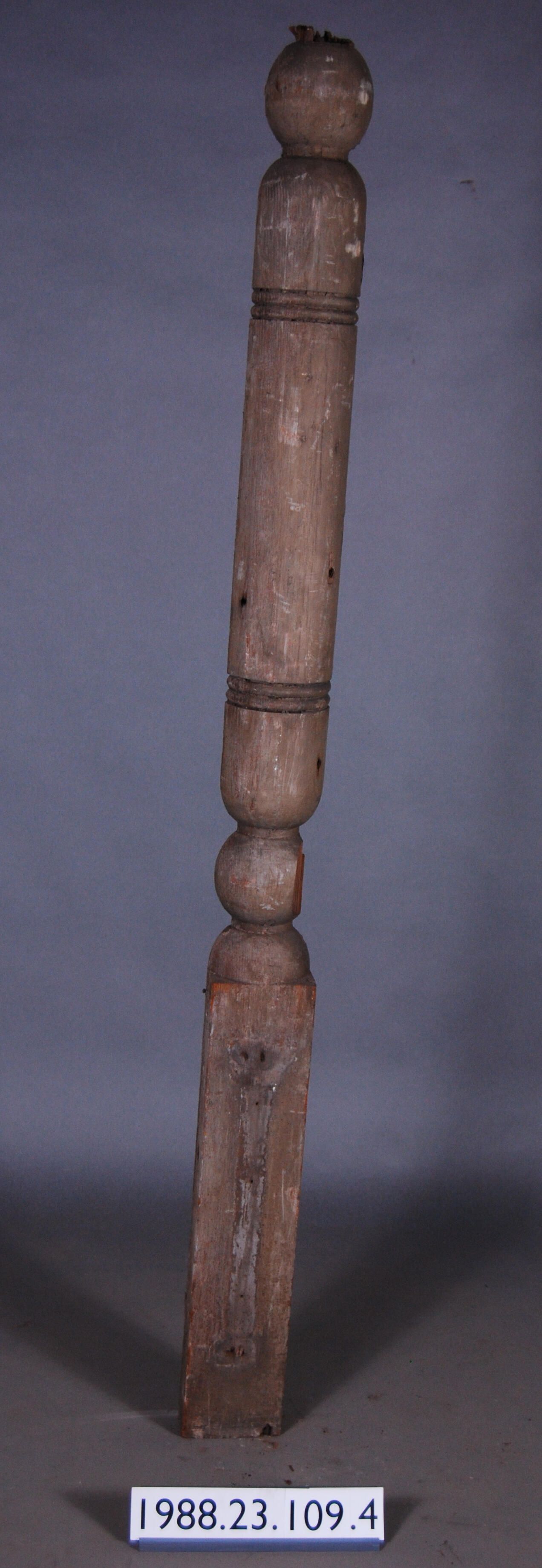Exterior wood half round cross section. Post truncated. Painted grey. Manufacturer: Place of Manufacturer: Design motif: Style: Finish: Painted