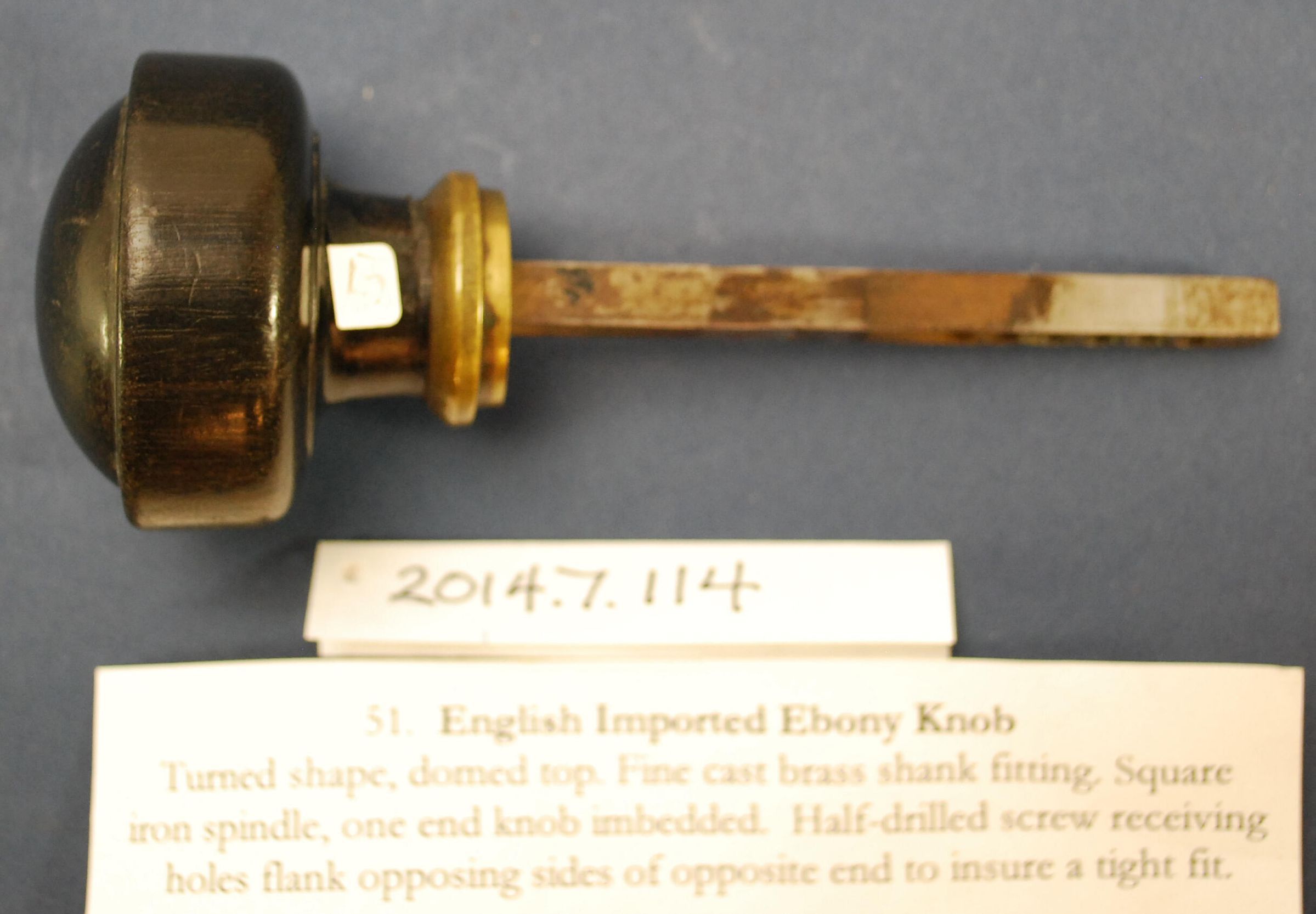 Design Name: Manufacturer: English Style: Material: Wood / Bronze Manufacturing Method: Turned Surface Finish: VDA Classification: Wood VDA Number: Shape: Domed / Drum Patent Specifics: Lock Type (If Applicable): Inscription/Makers Mark: Inscription Text: Comments: Bronze core with steel spindle. Possibly true ebony.