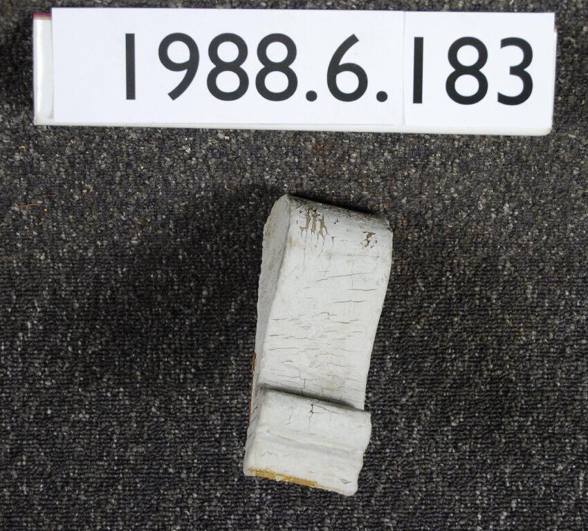 Exterior wood bracket. compound contour. Cut from single block. Painted grey. Inscriptions or Markings: Manufacturer: Place of Manufacturer: Design motif: Style: Finish: Painted