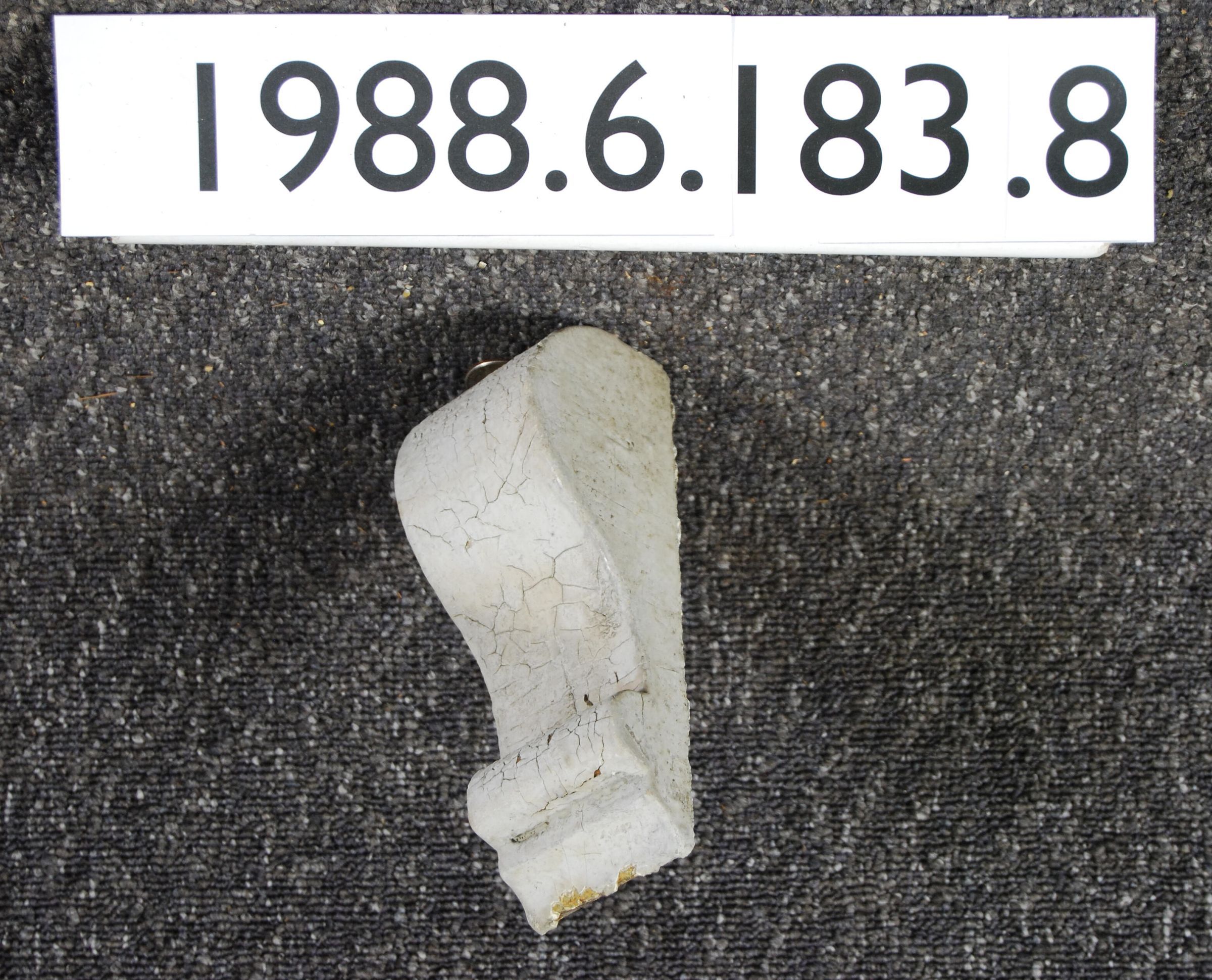 Exterior wood bracket. compound contour. Cut from single block. Painted grey. Inscriptions or Markings: Manufacturer: Place of Manufacturer: Design motif: Style: Finish: Painted