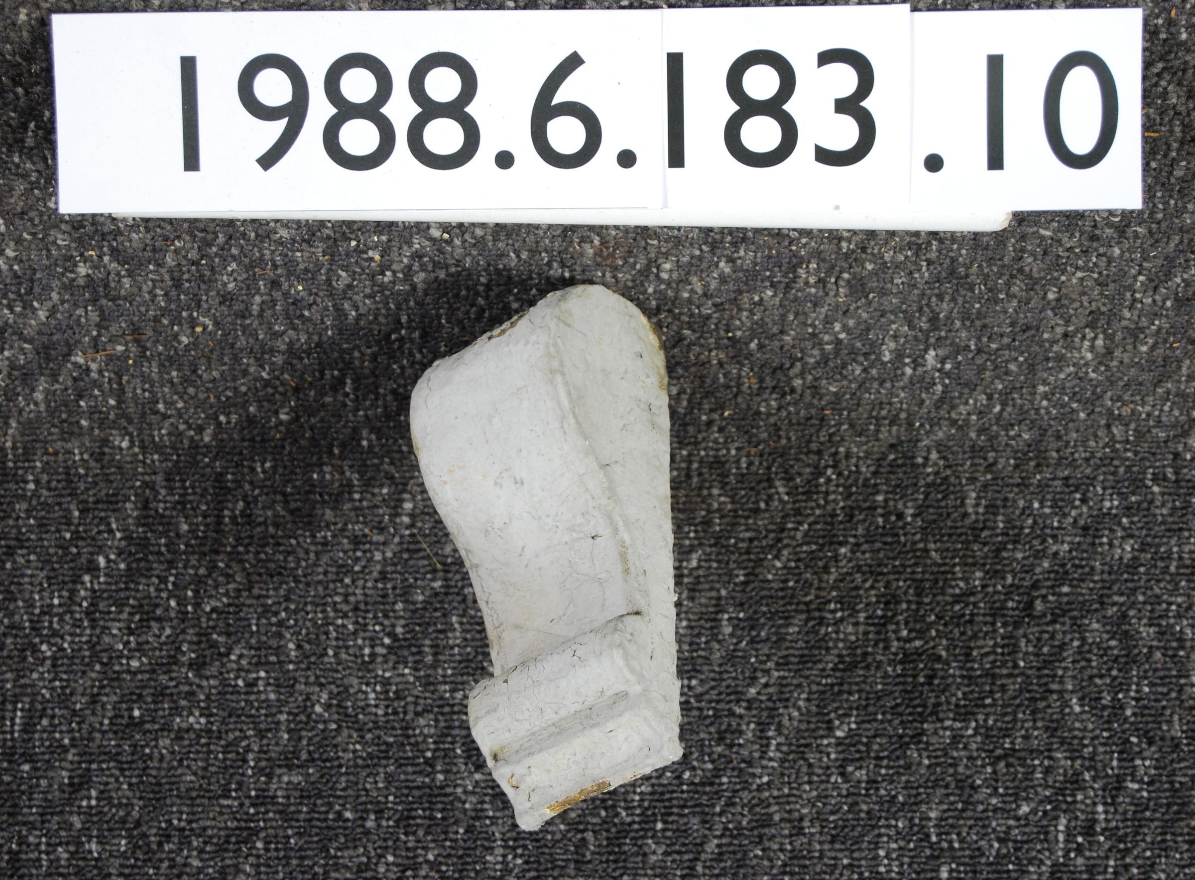 Exterior wood bracket. compound contour. Cut from single block. Painted grey. Inscriptions or Markings: Manufacturer: Place of Manufacturer: Design motif: Style: Finish: Painted