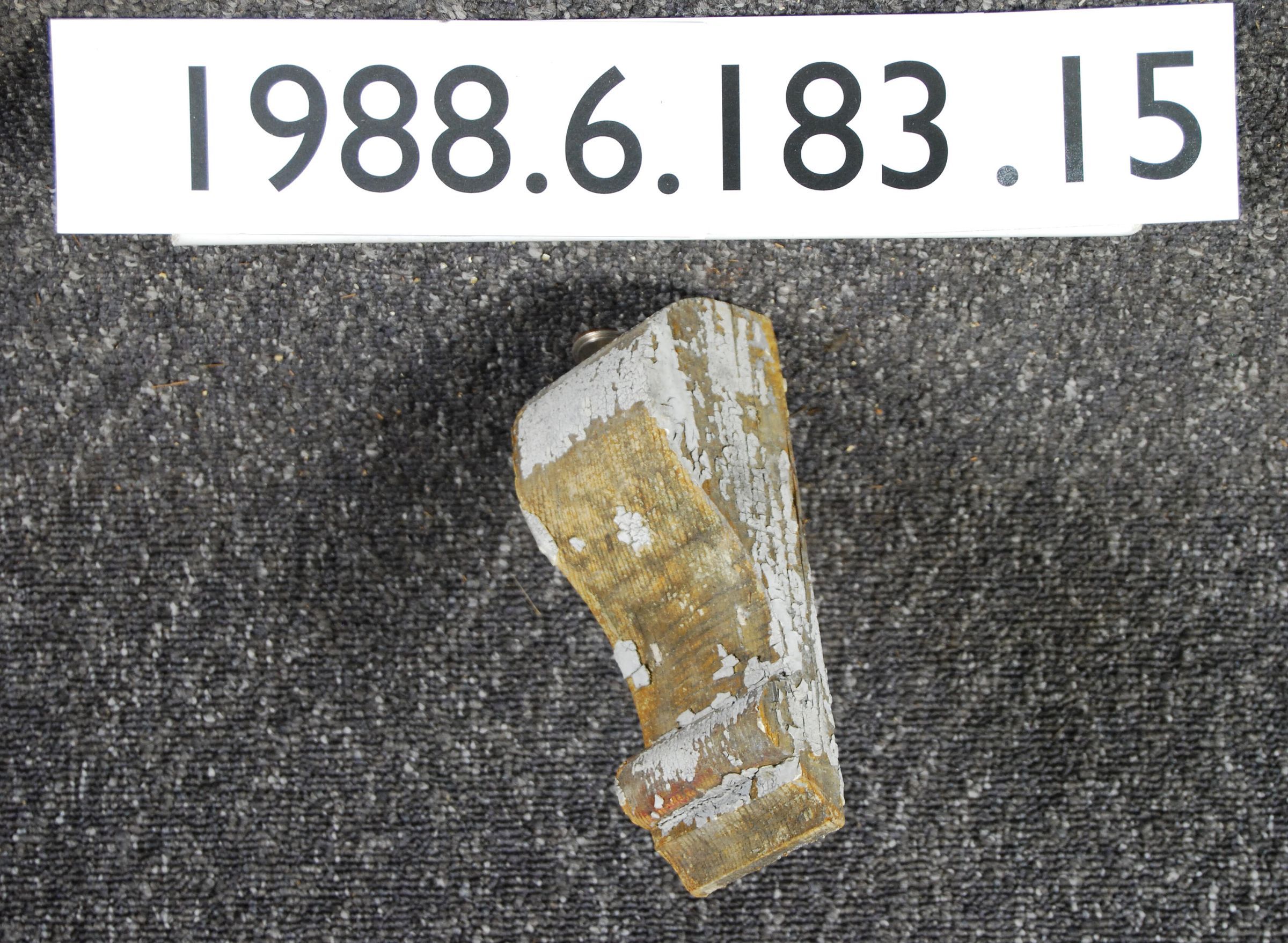Exterior wood bracket. compound contour. Cut from single block. Painted grey. Inscriptions or Markings: Manufacturer: Place of Manufacturer: Design motif: Style: Finish: Painted