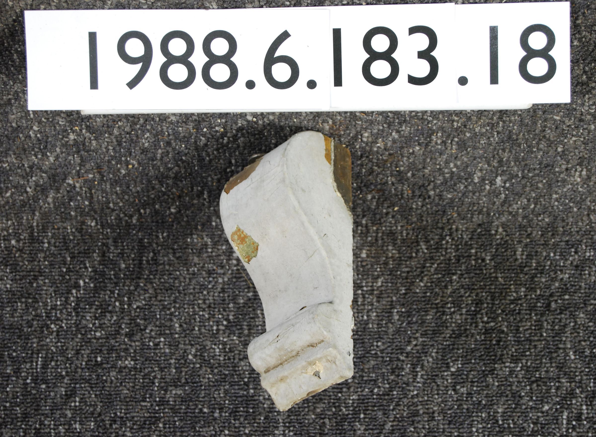 Exterior wood bracket. compound contour. Cut from single block. Painted grey. Inscriptions or Markings: Manufacturer: Place of Manufacturer: Design motif: Style: Finish: Painted