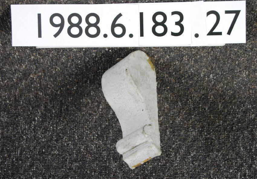 Exterior wood bracket. compound contour. Cut from single block. Painted grey. Inscriptions or Markings: Manufacturer: Place of Manufacturer: Design motif: Style: Finish: Painted