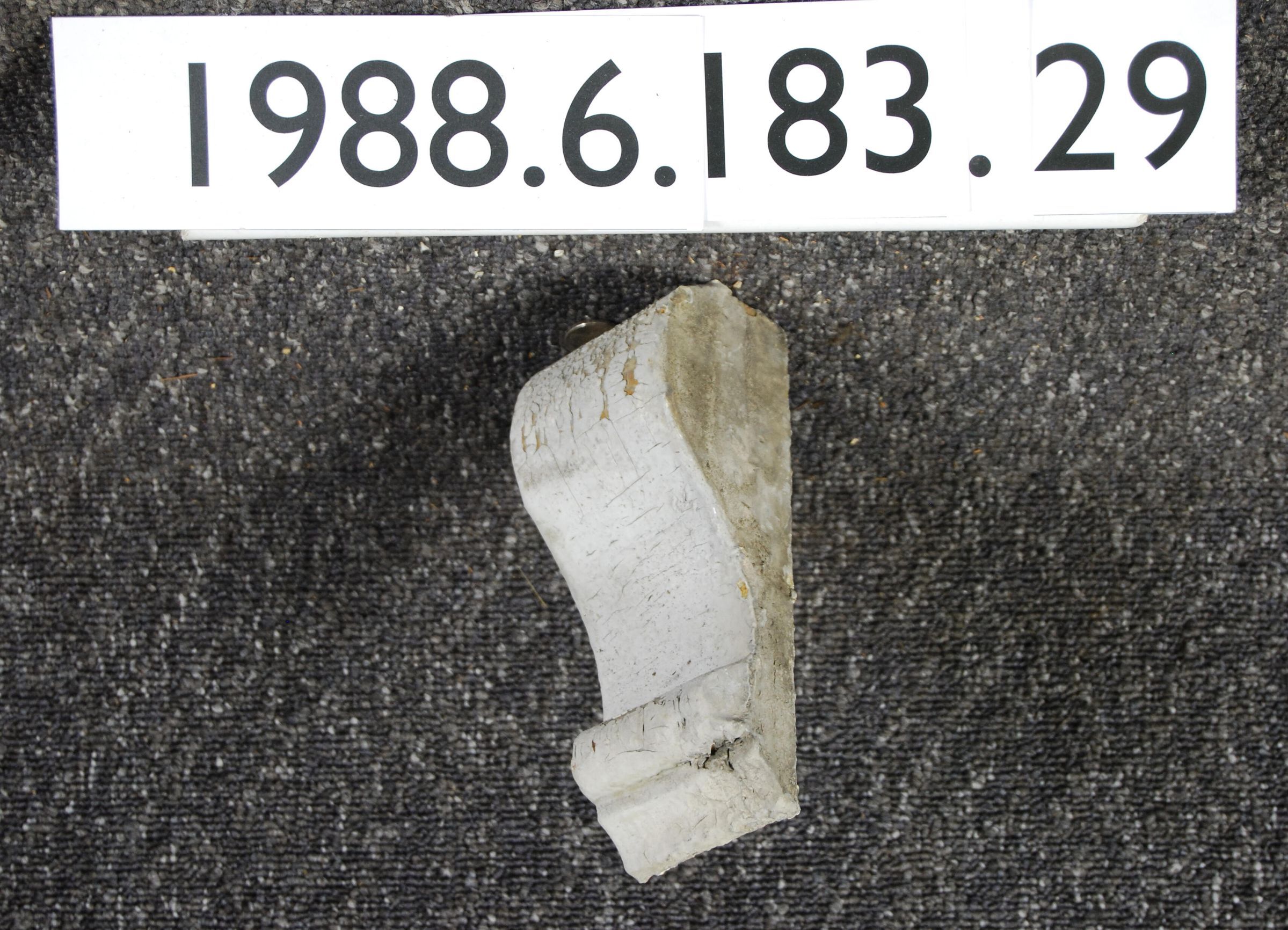 Exterior wood bracket. compound contour. Cut from single block. Painted grey. Inscriptions or Markings: Manufacturer: Place of Manufacturer: Design motif: Style: Finish: Painted