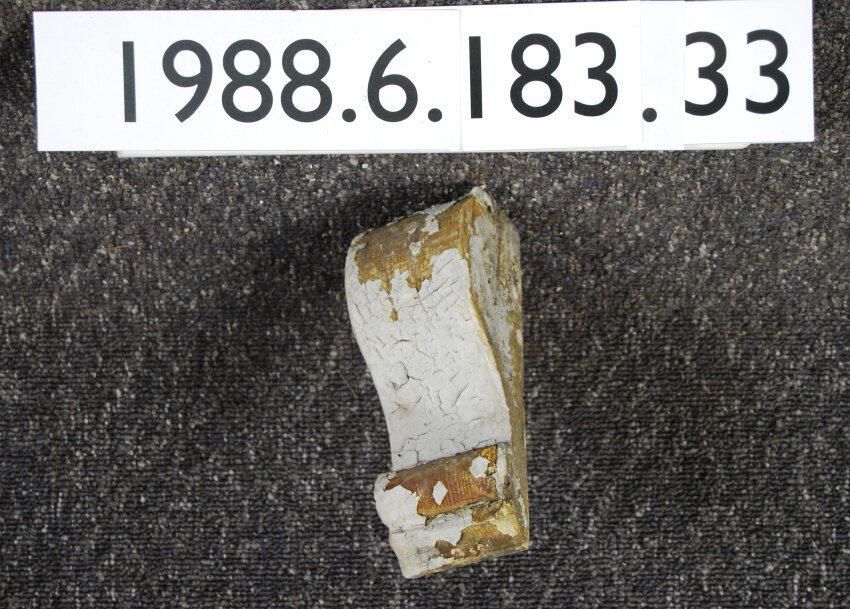 Exterior wood bracket. compound contour. Cut from single block. Painted grey. Inscriptions or Markings: Manufacturer: Place of Manufacturer: Design motif: Style: Finish: Painted
