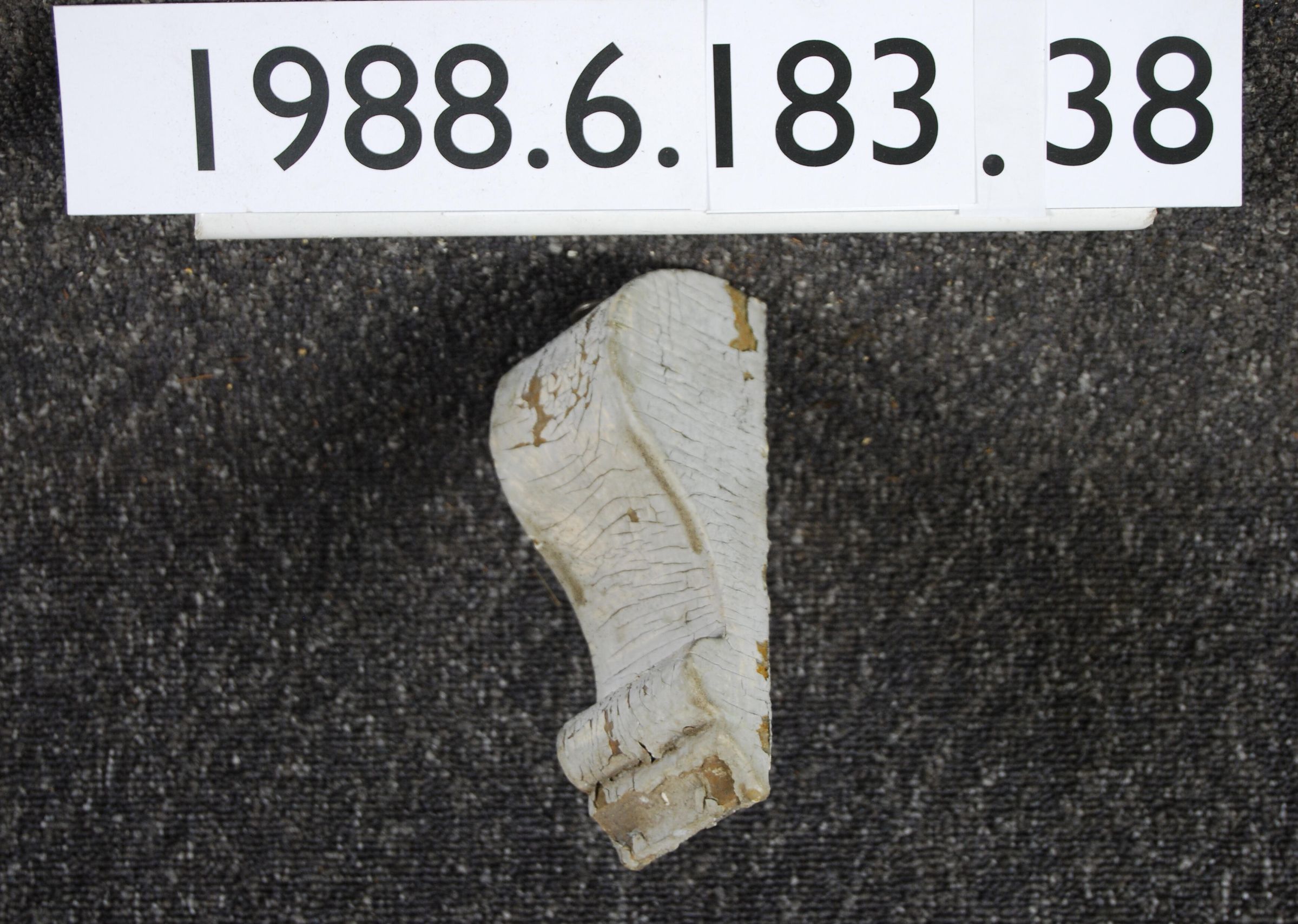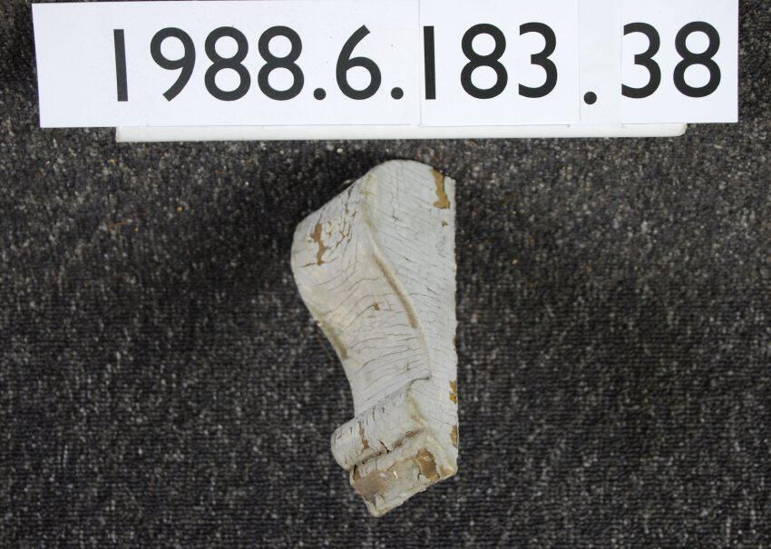 Exterior wood bracket. compound contour. Cut from single block. Painted grey. Inscriptions or Markings: Manufacturer: Place of Manufacturer: Design motif: Style: Finish: Painted