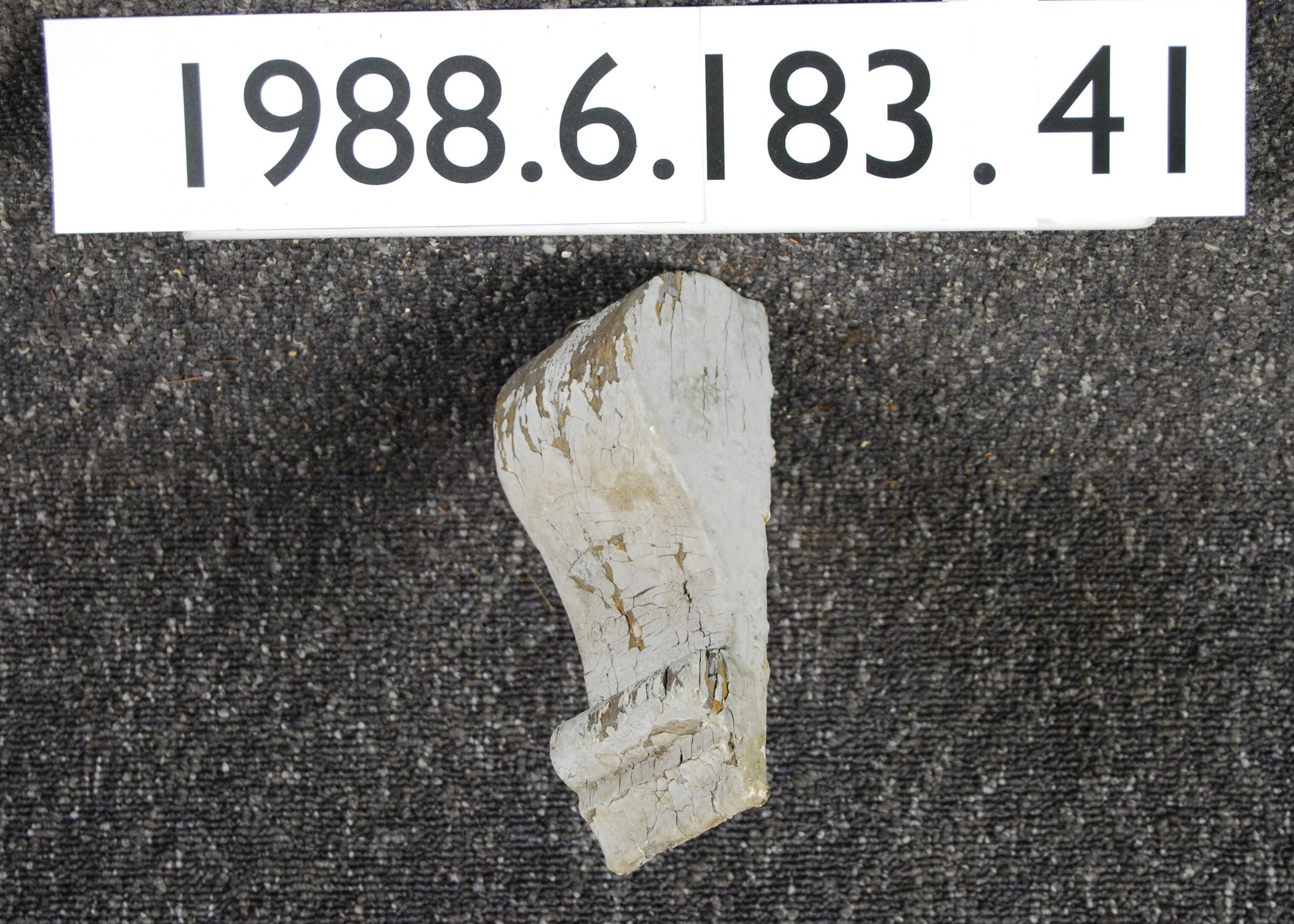 Exterior wood bracket. compound contour. Cut from single block. Painted grey. Inscriptions or Markings: Manufacturer: Place of Manufacturer: Design motif: Style: Finish: Painted
