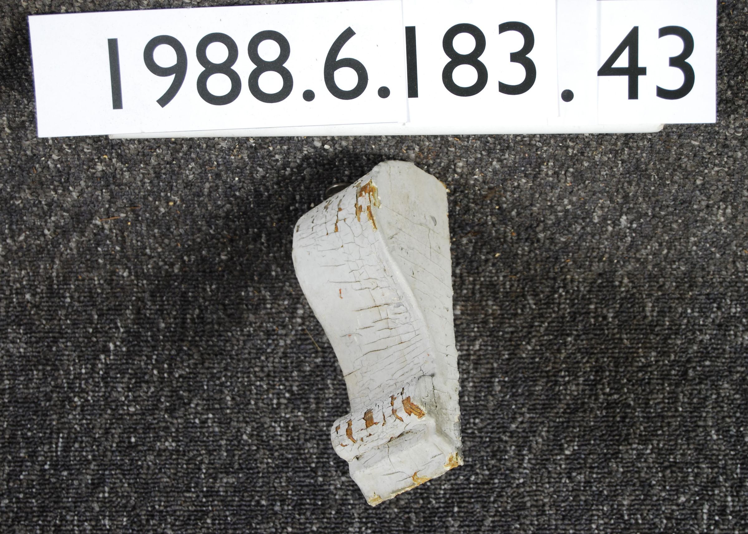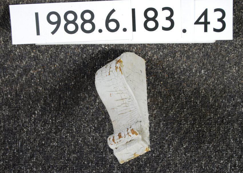 Exterior wood bracket. compound contour. Cut from single block. Painted grey. Inscriptions or Markings: Manufacturer: Place of Manufacturer: Design motif: Style: Finish: Painted
