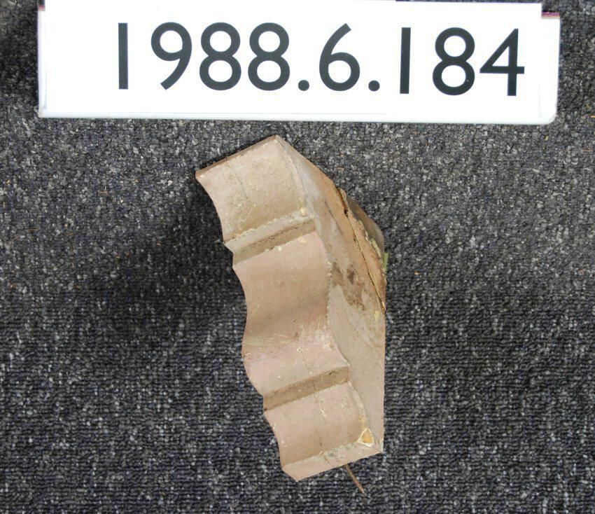 Exterior wood bracket. compound contour. Cut from single block. Painted pink. Inscriptions or Markings: Manufacturer: Place of Manufacturer: Design motif: Style: Finish: Painted