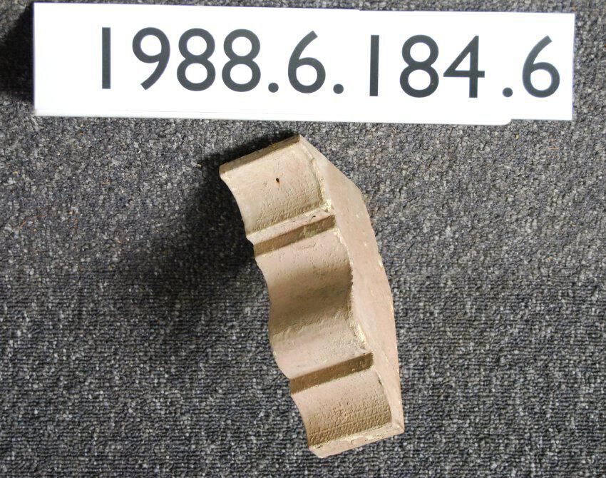 Exterior wood bracket. compound contour. Cut from single block. Painted pink. Inscriptions or Markings: Manufacturer: Place of Manufacturer: Design motif: Style: Finish: Painted