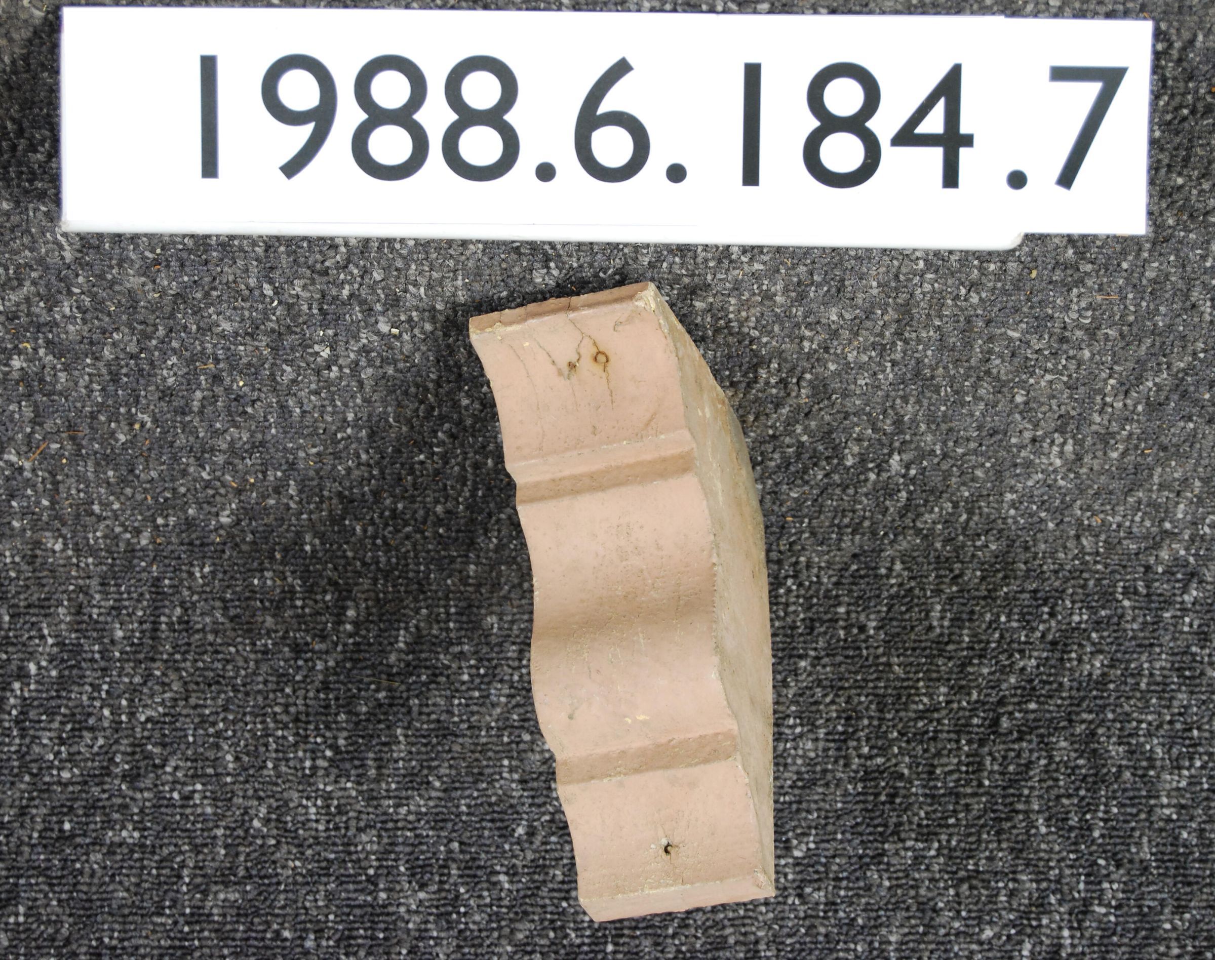 Exterior wood bracket. compound contour. Cut from single block. Painted pink. Inscriptions or Markings: Manufacturer: Place of Manufacturer: Design motif: Style: Finish: Painted