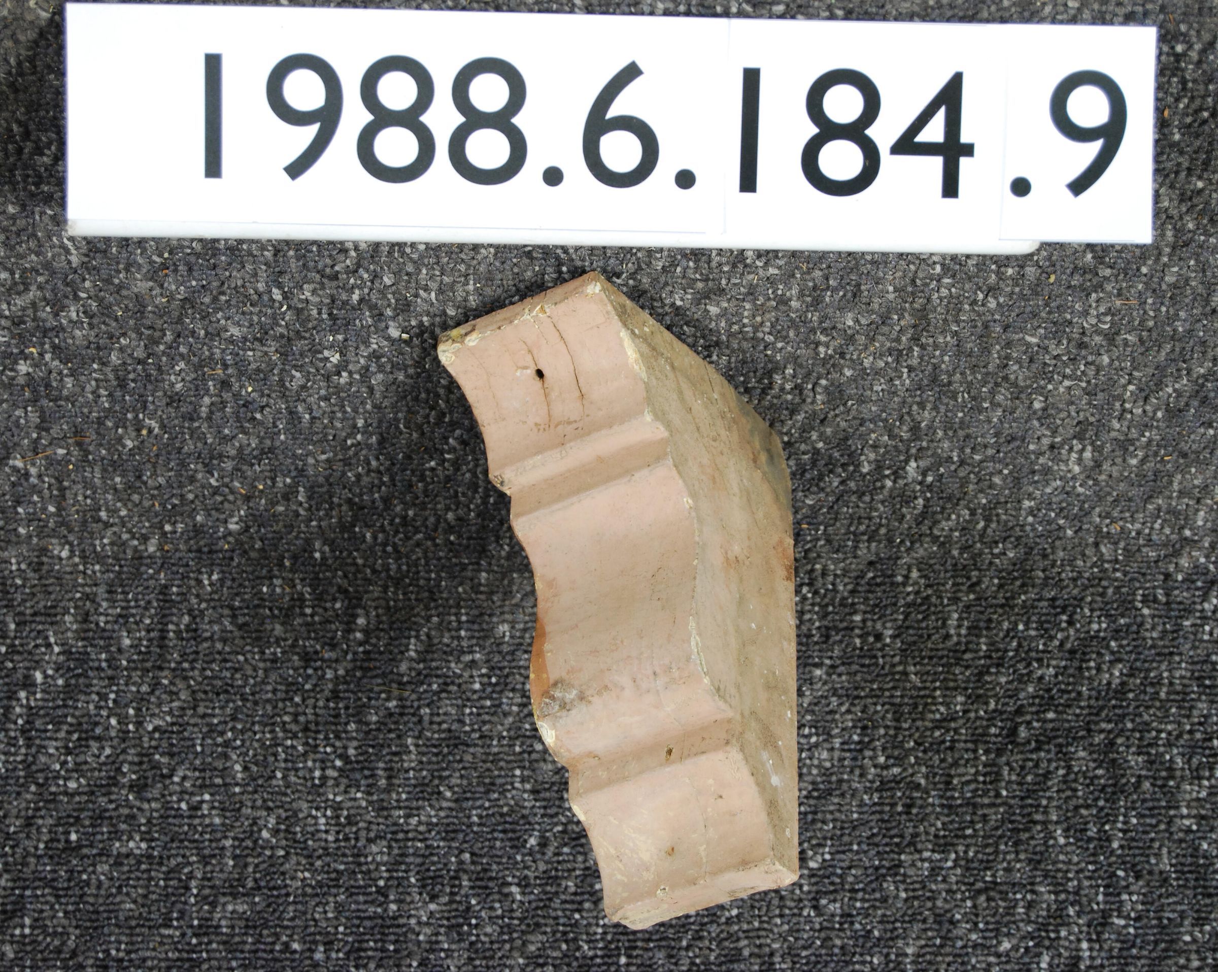 Exterior wood bracket. compound contour. Cut from single block. Painted pink. Inscriptions or Markings: Manufacturer: Place of Manufacturer: Design motif: Style: Finish: Painted