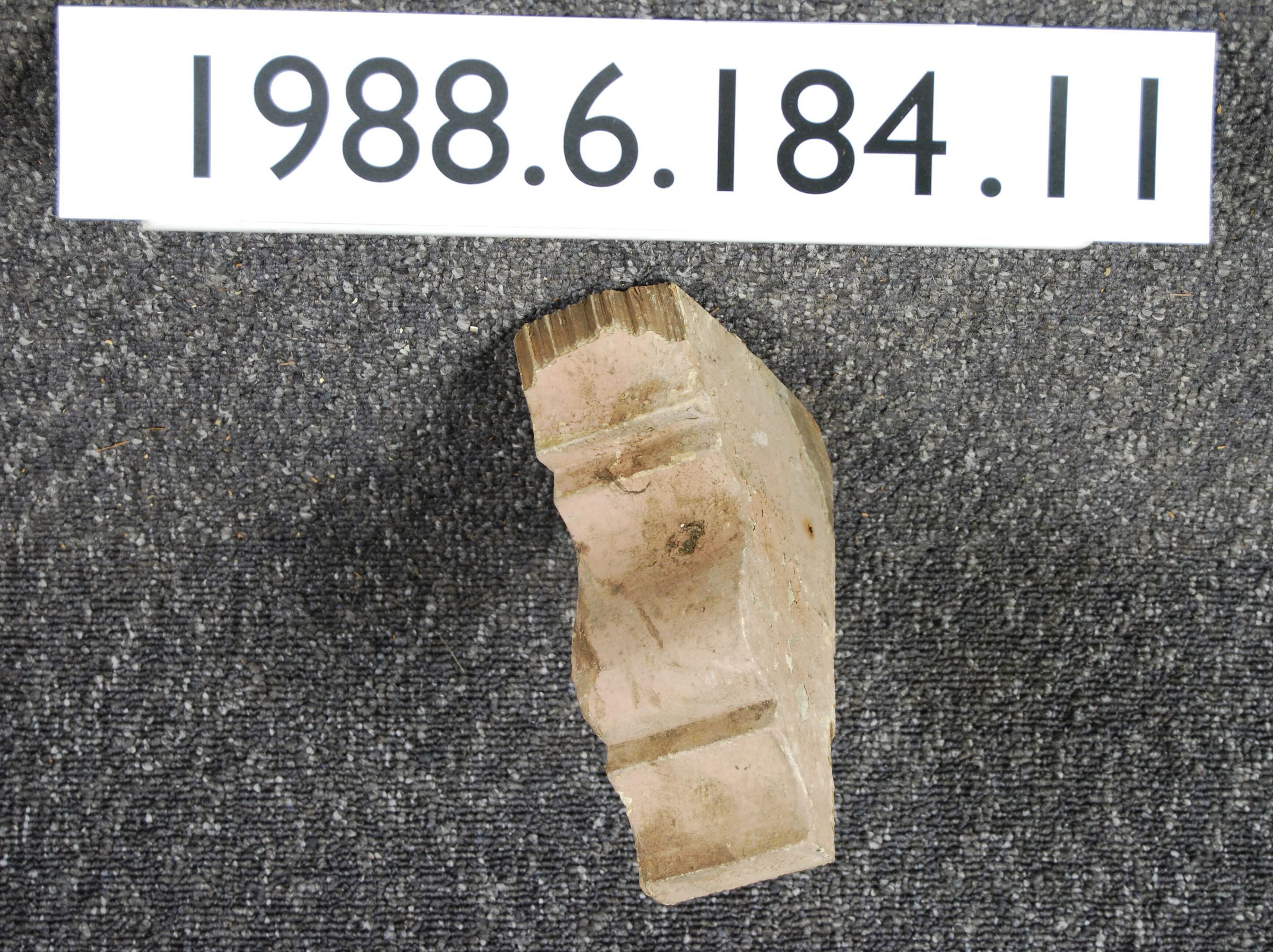 Exterior wood bracket. compound contour. Cut from single block. Painted pink. Inscriptions or Markings: Manufacturer: Place of Manufacturer: Design motif: Style: Finish: Painted