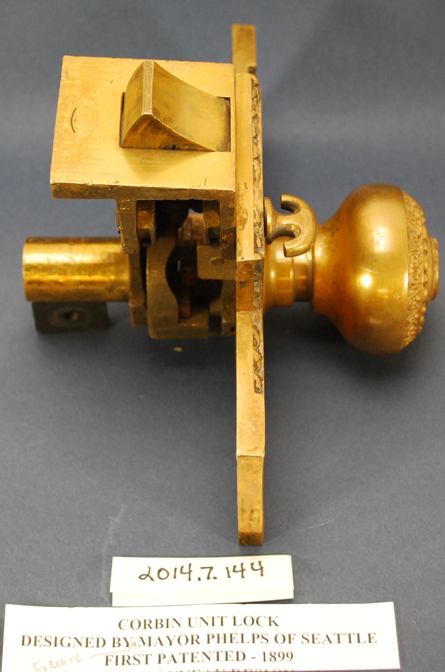 Comments: Missing one side of set & strike. Unit lock patented in 1899 by Byron Phelps, former Mayor of Seattle.Lexicon