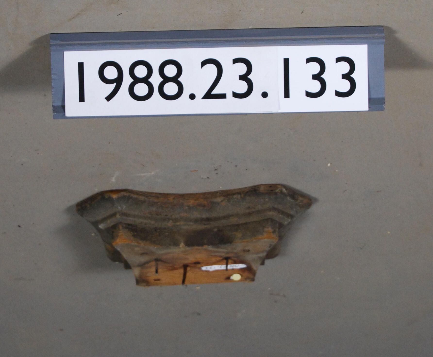 Exterior wood Abacus from top of Classical Revival capital. Lower portion of capital is missing. Painted grey(?) Manufacturer: Place of Manufacturer: Design motif: Style: Finish: Painted