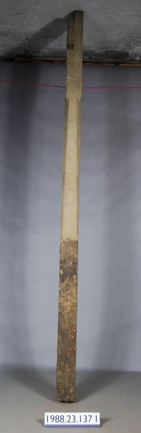 Exterior wood. Post. Square with tapered stop-chamfered corners. Bottom end treated with tar preservative. Painted with grey sand-texturized paint. Manufacturer: Place of Manufacturer: Design motif: Style: Finish: Painted