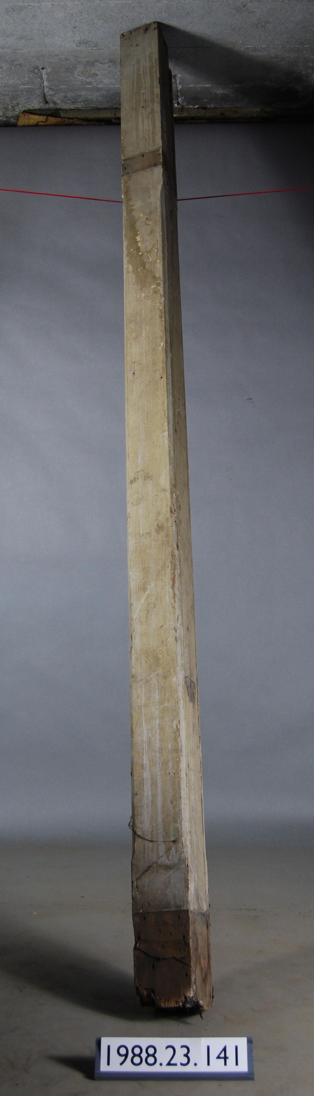 Exterior wood hollow-square box post. Has stop-chamfered corners. Painted grey or off-white. Manufacturer: Place of Manufacturer: Design motif: Style: Finish: Painted