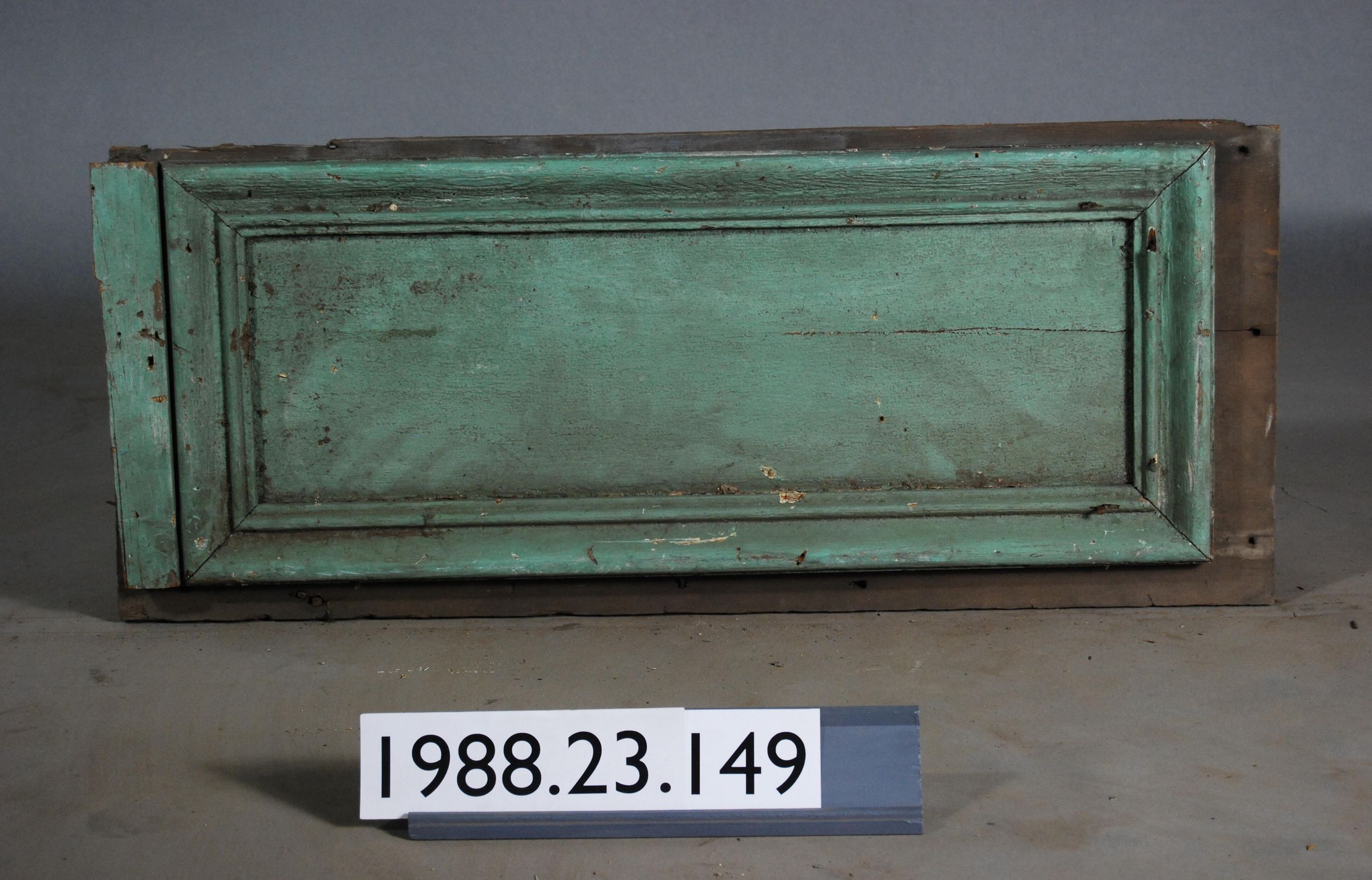 Exterior wood. Single board with applied moldings. Painted green. Manufacturer: Place of Manufacturer: Design motif: Style: Finish: Painted