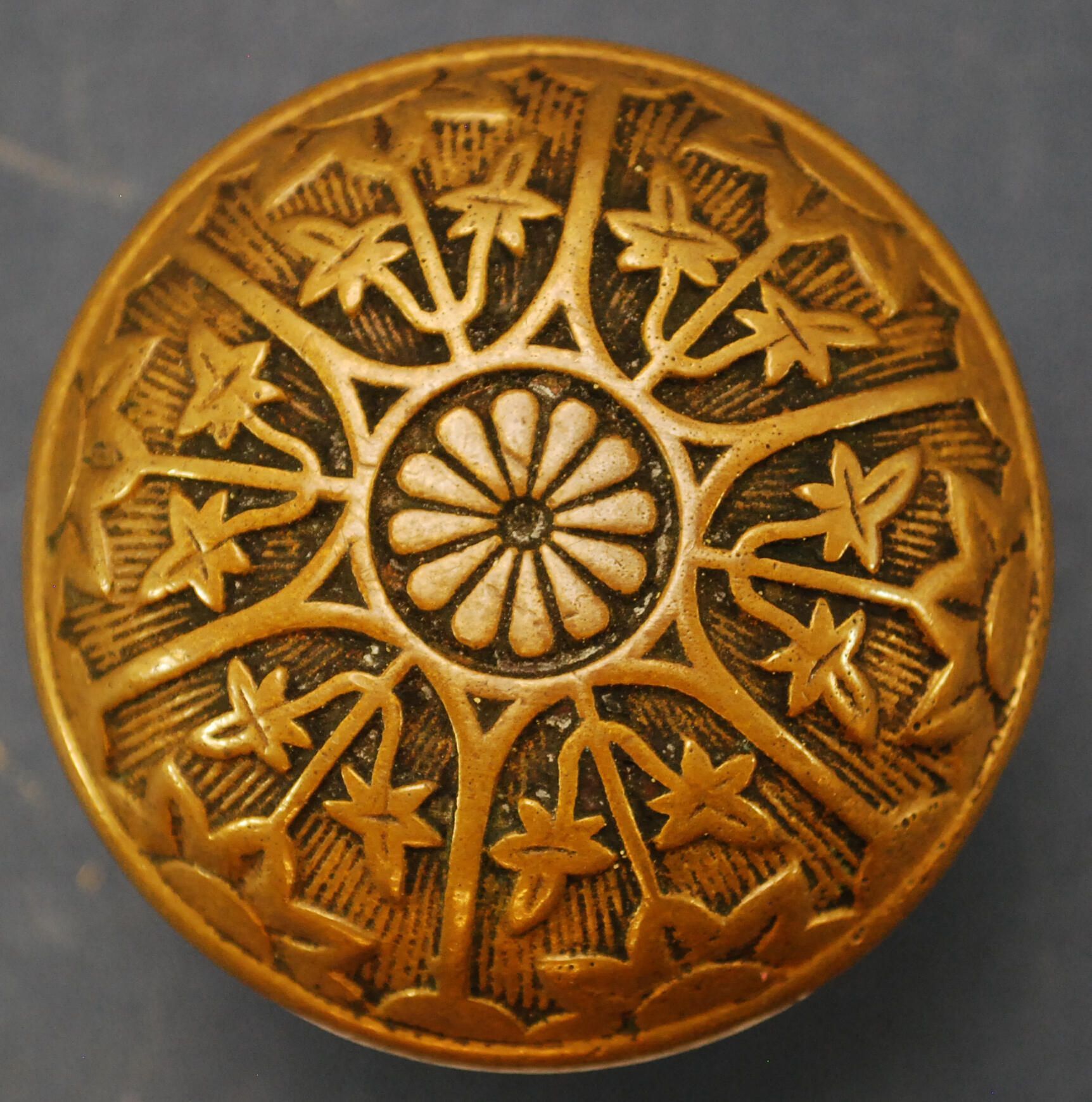 Design Name: Arcadia Manufacturer: Sargent & Co. Style: Eastlake Material: Bronze Manufacturing Method: Cast Surface Finish: Aged / Unpolished VDA Classification: Sixfold Symmetry VDA Number: J-209 Shape: Domed Patent Specifics: Lock Type (If Applicable): Inscription/Makers Mark: Inscription Text: Comments: