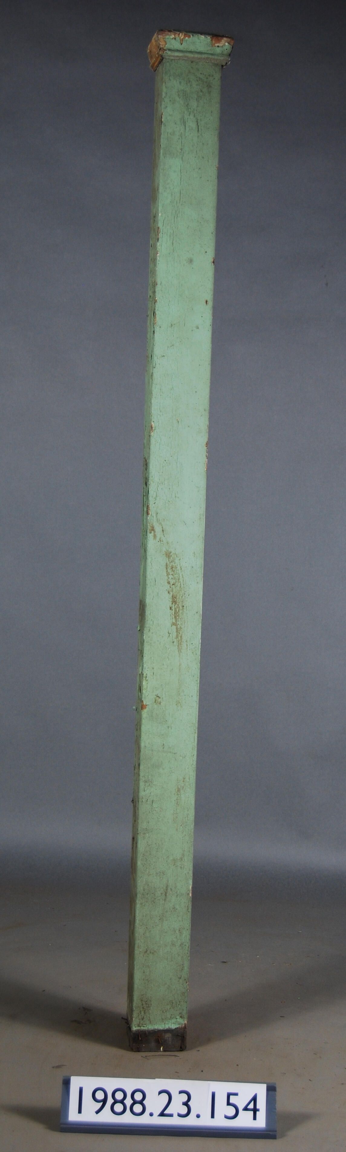 Pair of exterior wood posts. Square with moldings at one end. Painted green. Manufacturer: Place of Manufacturer: Design motif: Style: Finish: Painted