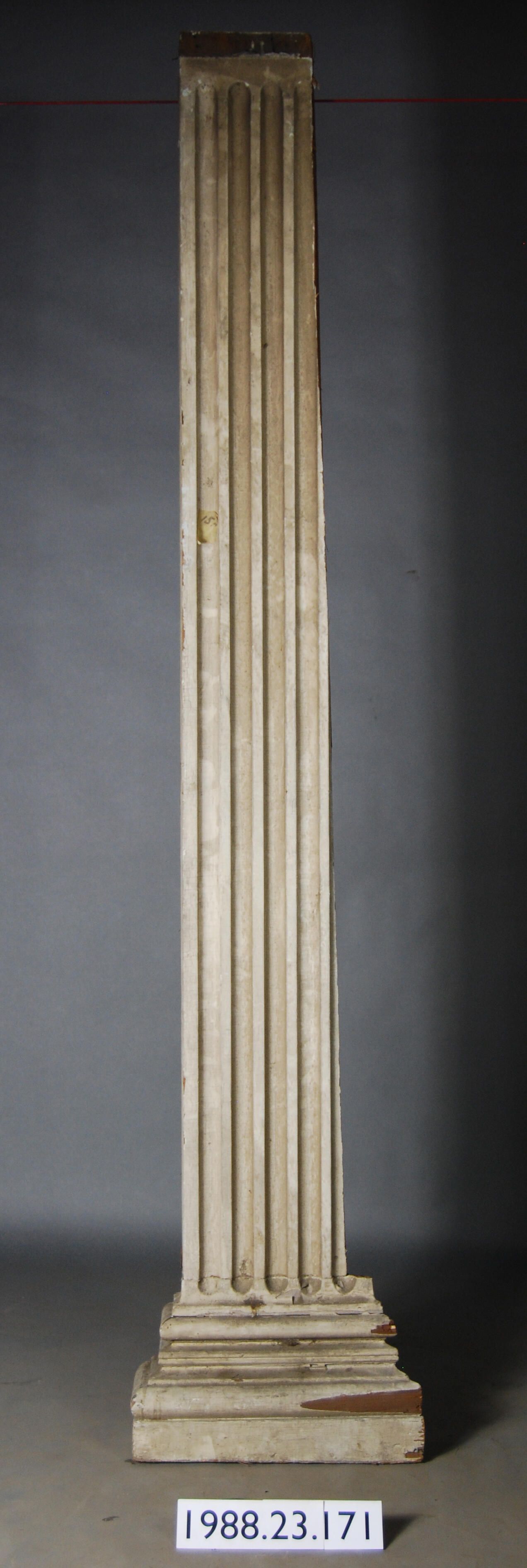 Exterior wood classical revival style pilaster. Fluted front. Moldings at base. One edge missing piece. Painted white. Manufacturer: Place of Manufacturer: Design motif: Style: Finish: Painted