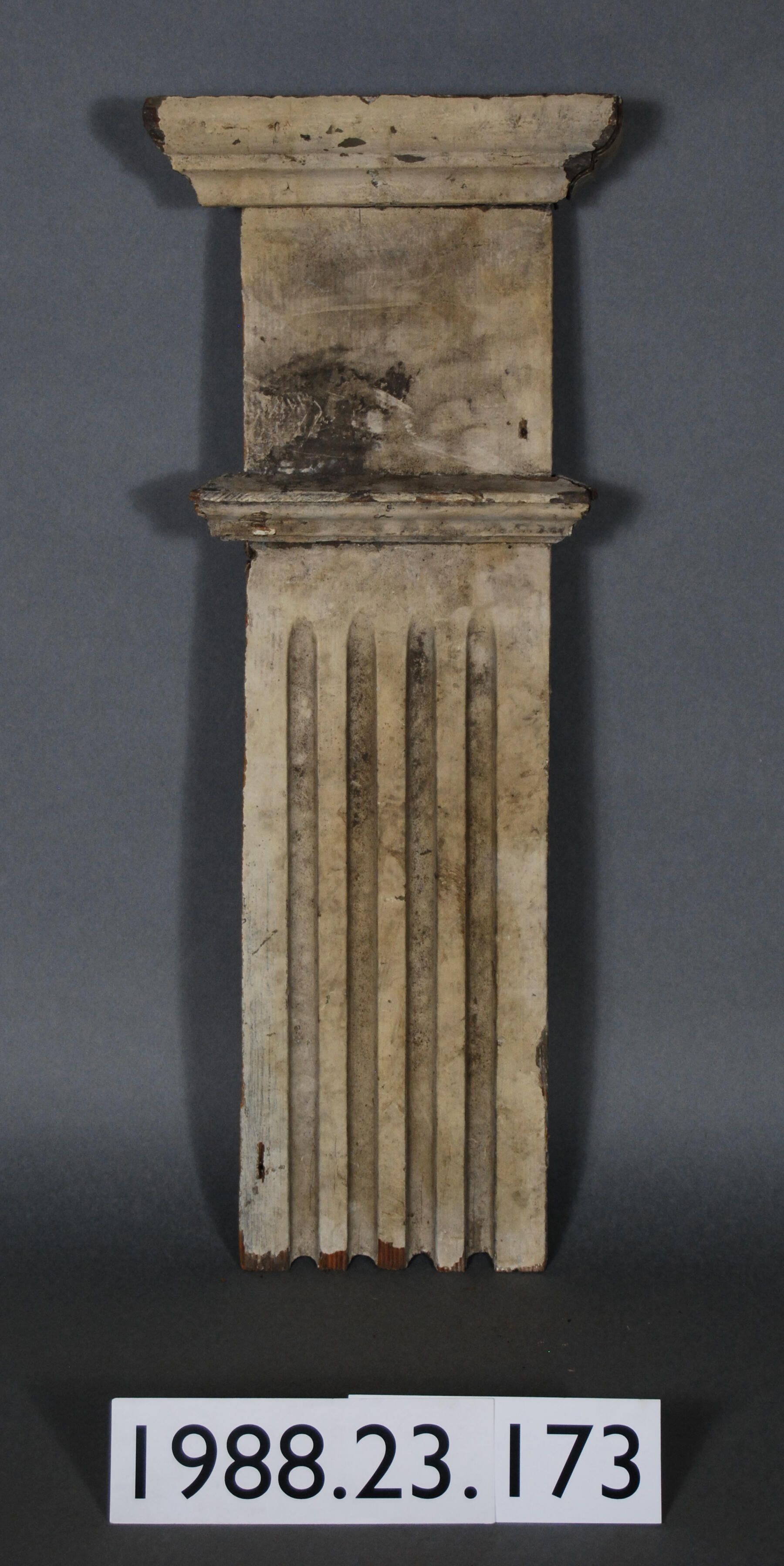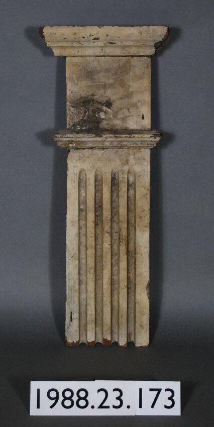 Exterior wood classical revival style pilaster. Moldings at top. Fluted front. Truncated lower end. Painted white. Manufacturer: Place of Manufacturer: Design motif: Style: Finish: Painted