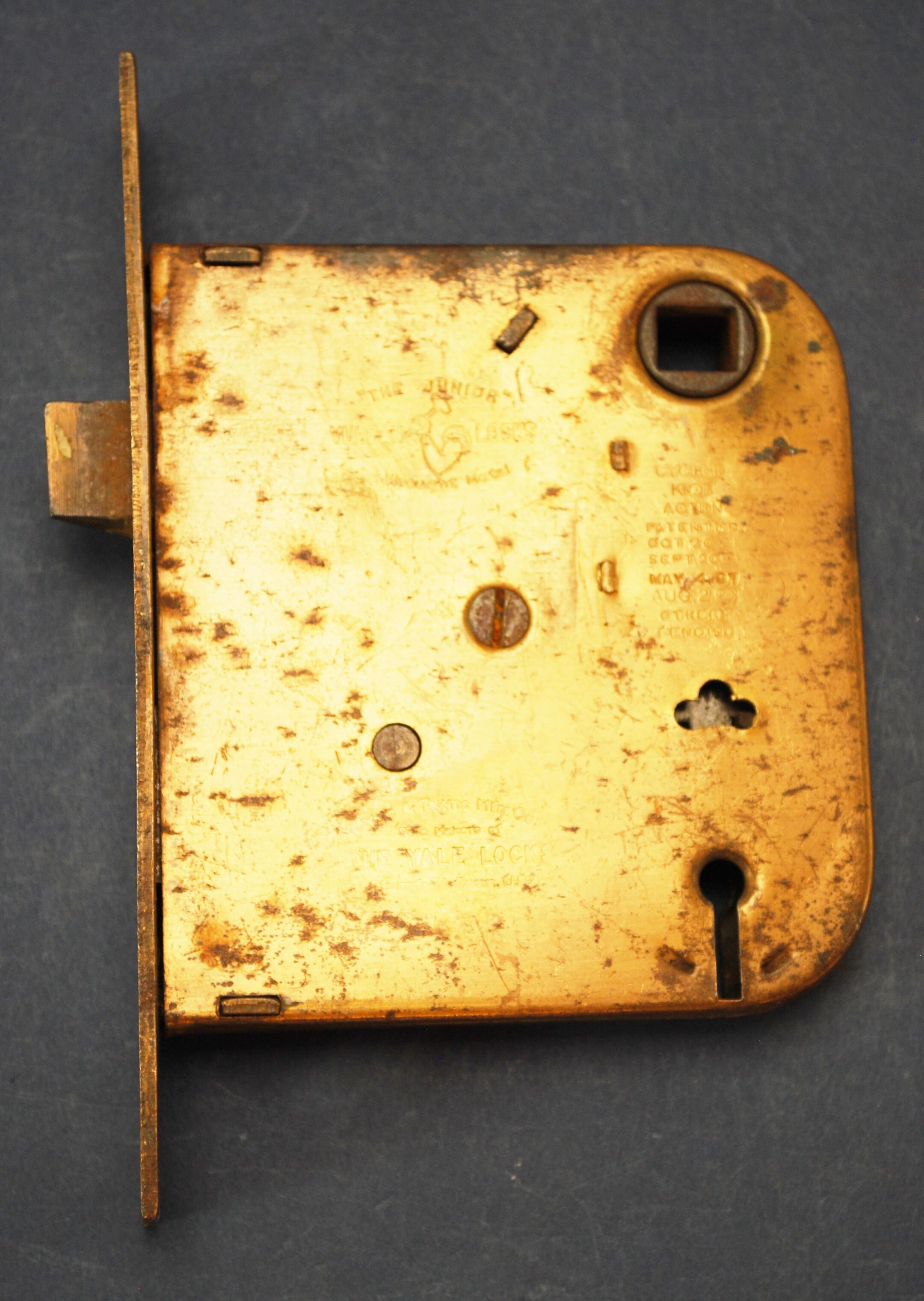 Inscription Text: The Junior Vulcan Locks Wrought Metal Cycloid Knob Action