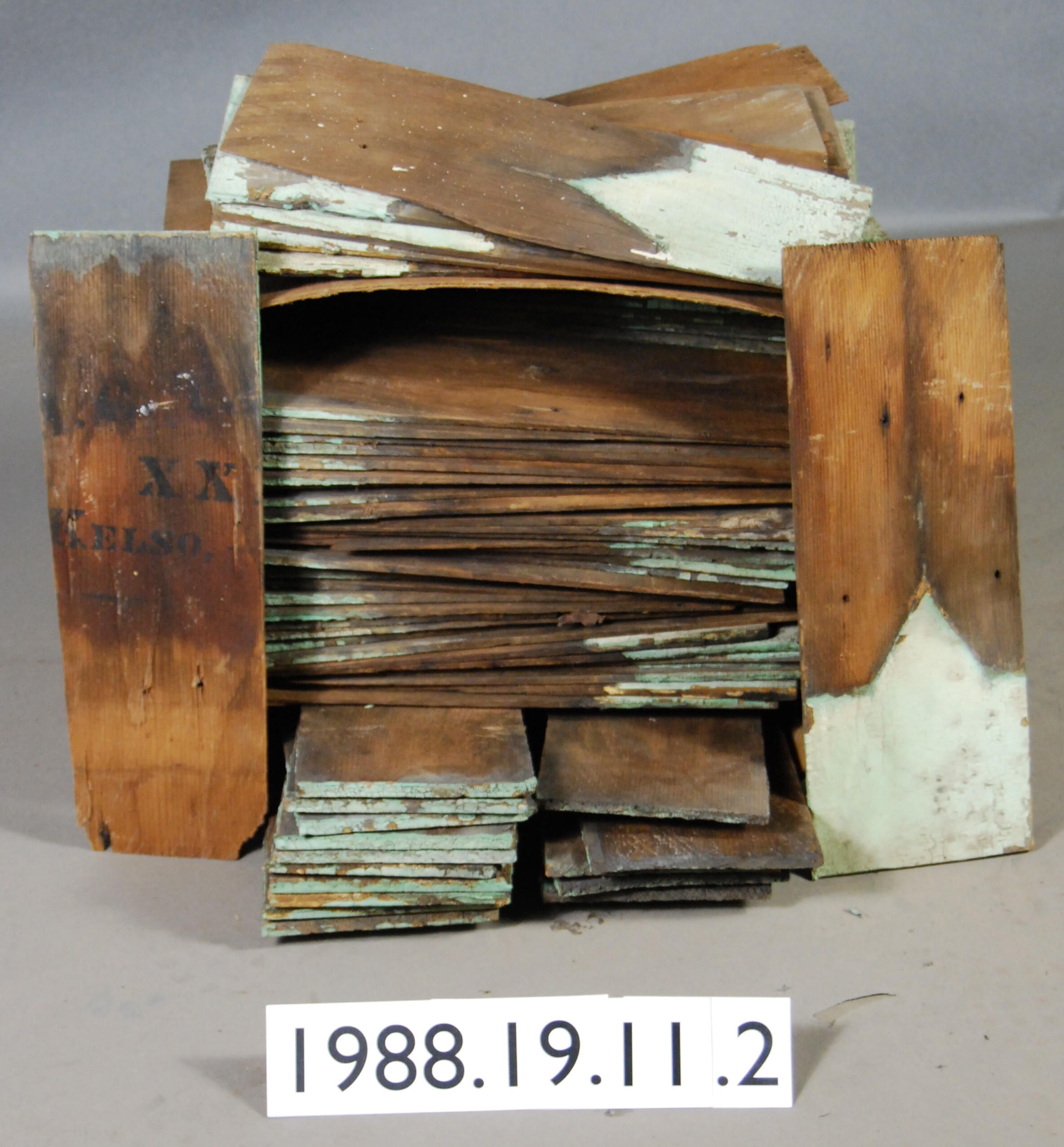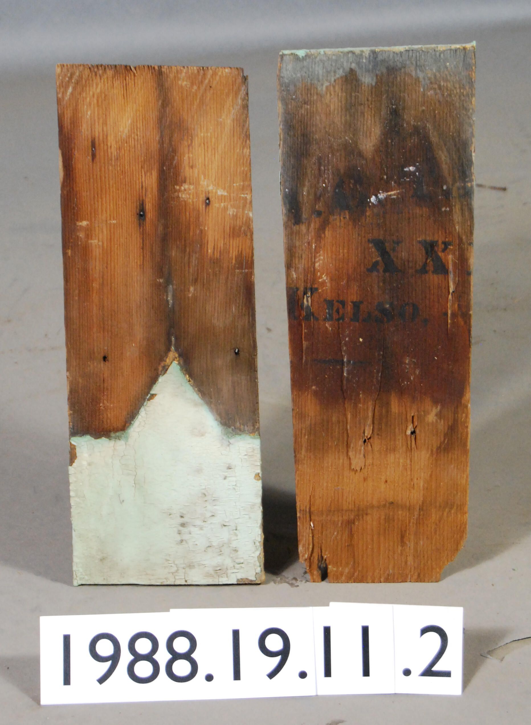 Inscriptions or Markings: "KELSO" on back of one shingle.