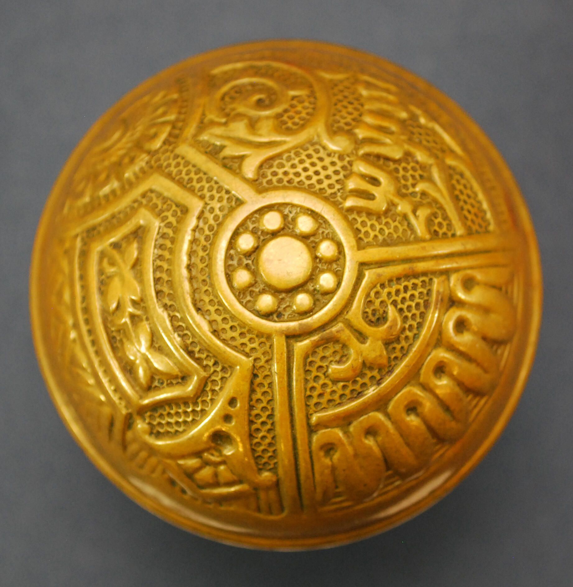 Design Name: Ceylon Manufacturer: P & F Corbin Style: Material: Bronze Manufacturing Method: Wrought / Stamped Surface Finish: Aged / Unpolished VDA Classification: Asymmetric VDA Number: B-114 Shape: Domed Patent Specifics: Lock Type (If Applicable): Inscription/Makers Mark: Inscription Text: Comments: