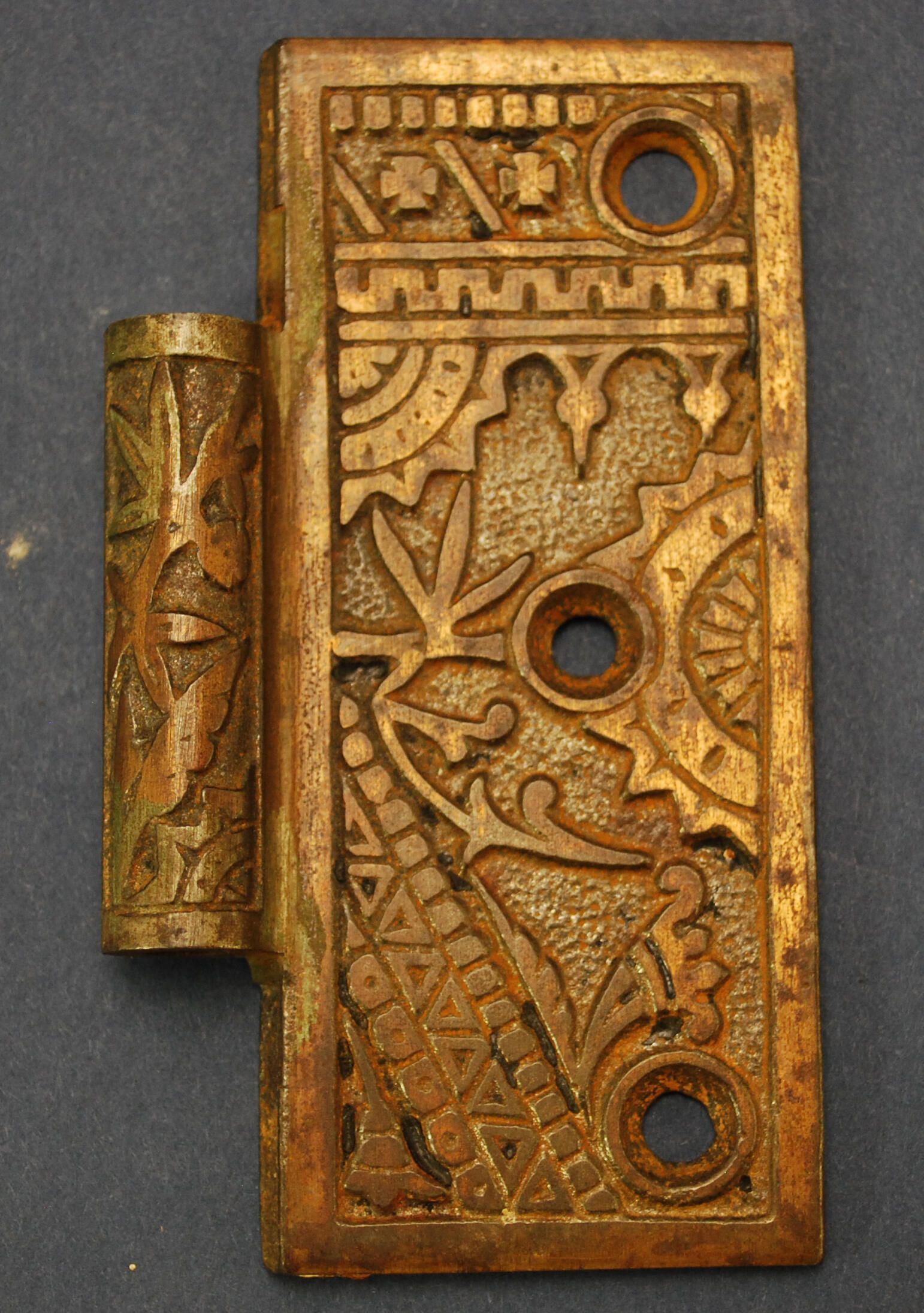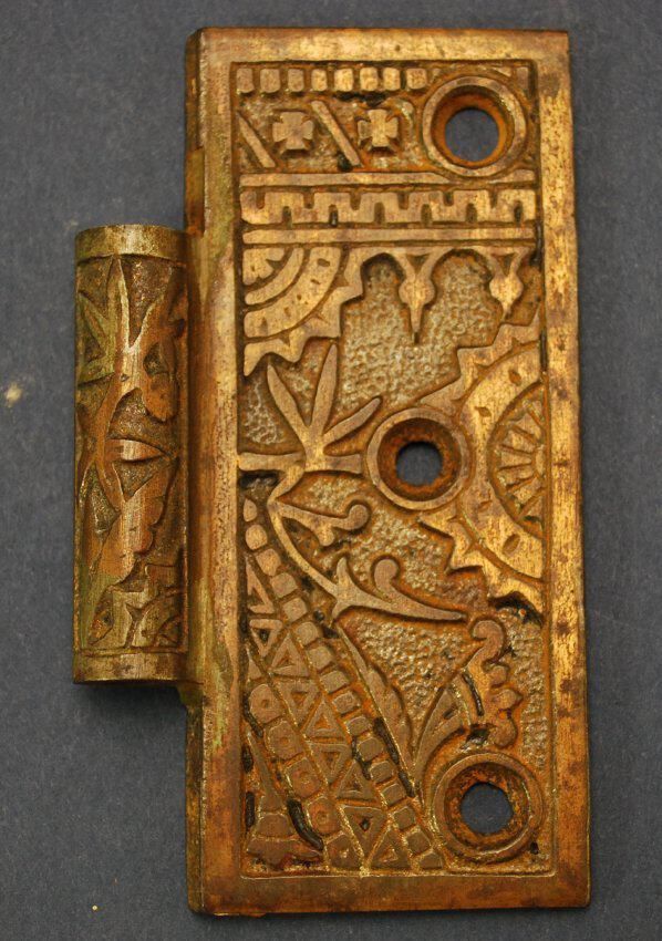 Design Name: Oriental Manufacturer: Branford Lock Works Style: Material: Iron Manufacturing Method: Cast Surface Finish: Plated / Japanned VDA Classification: VDA Number: Shape: Patent Specifics: Lock Type (If Applicable): Inscription/Makers Mark: Inscription Text: Branford Lock Works Branford, Conn. 3 1/2 3 1/2 Comments: Hinge leaf only.