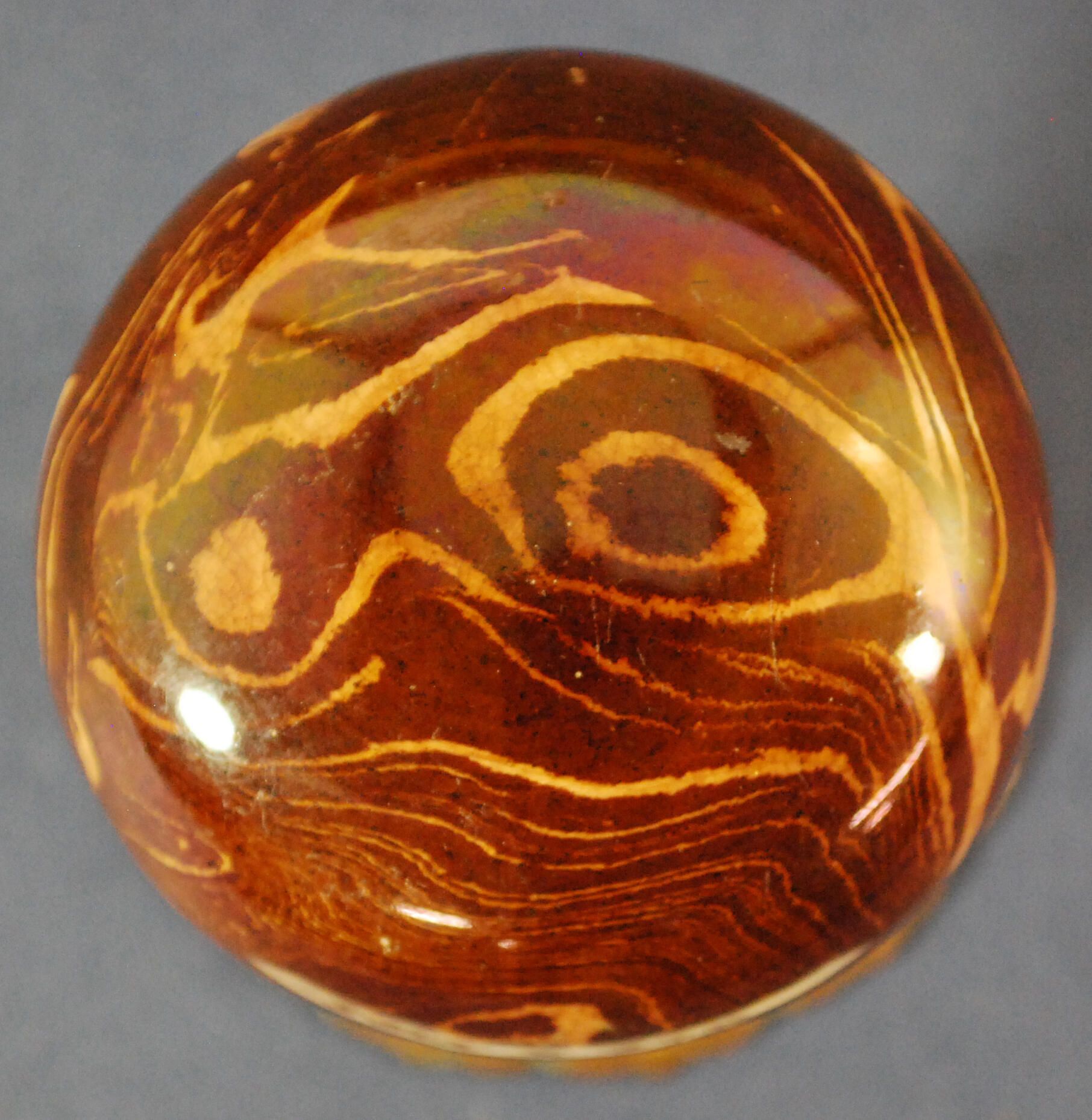 Comments: Rose attached to knob; English; Rockingham Glaze.Lexicon