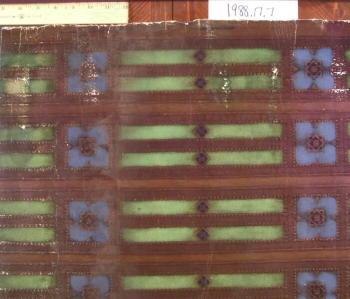Features and Comments: Pegged trim marks at border; uncut, grey squares, bands of greenLexicon