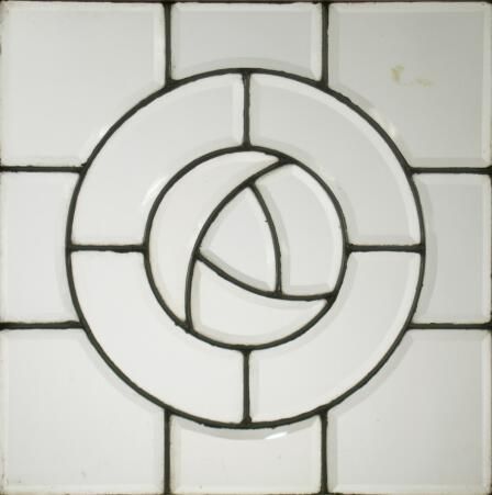 Mackintosh Rose Center with Geometric Background. Beveled clear glass.