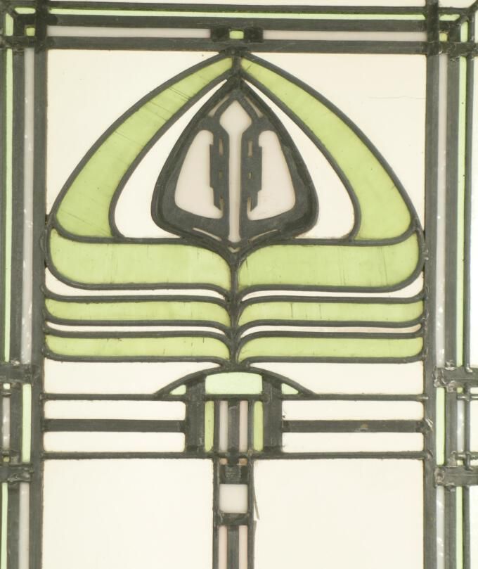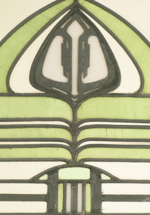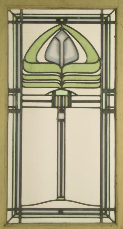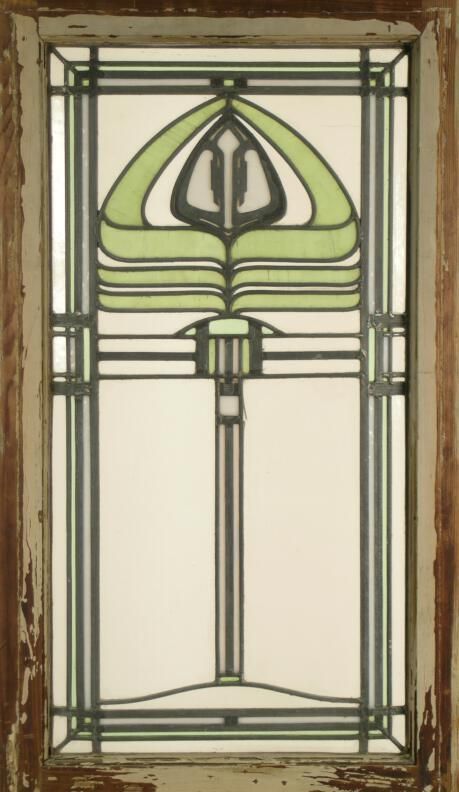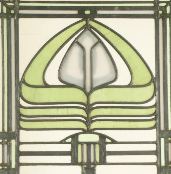 Art Nouveau / Prairie Style. Clear Textured Glass; Green Peacock motif or Lamp motif; Lead Overlay.