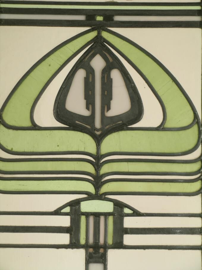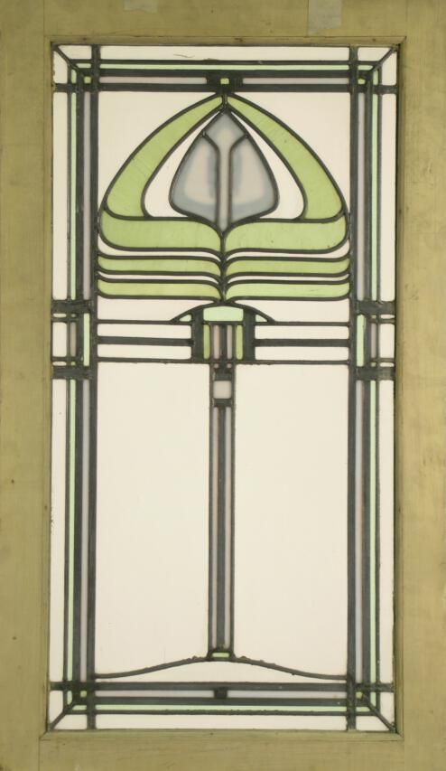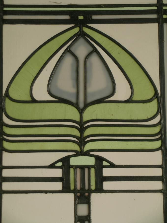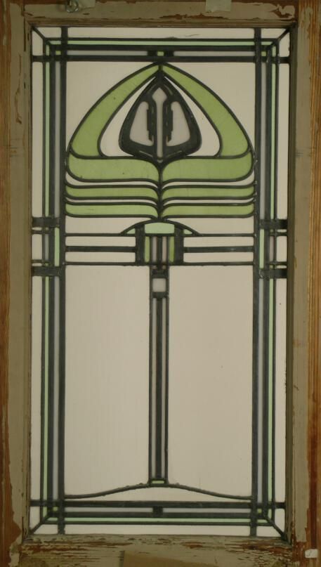 Art Nouveau / Prairie Style. Clear Textured Glass; Green Peacock motif or Lamp motif; Lead Overlay.