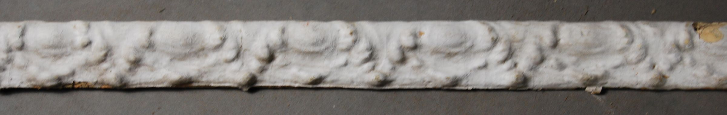 One lot of two interior wood picture rail moldings, decorated with gesso. Large botanical leaf and garland motif. Original finish gilt,now painted white.