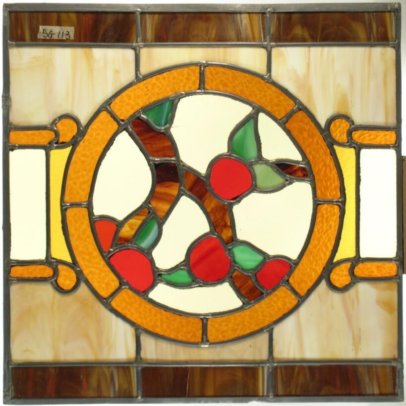 Apples in a circle; Amber circular border; Spectrum Opalescent outside with border; Heavy Lead.