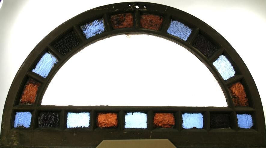 Semi - circular Transom with a framed border of individual panes of Machine-Rolled Rippled Glass.