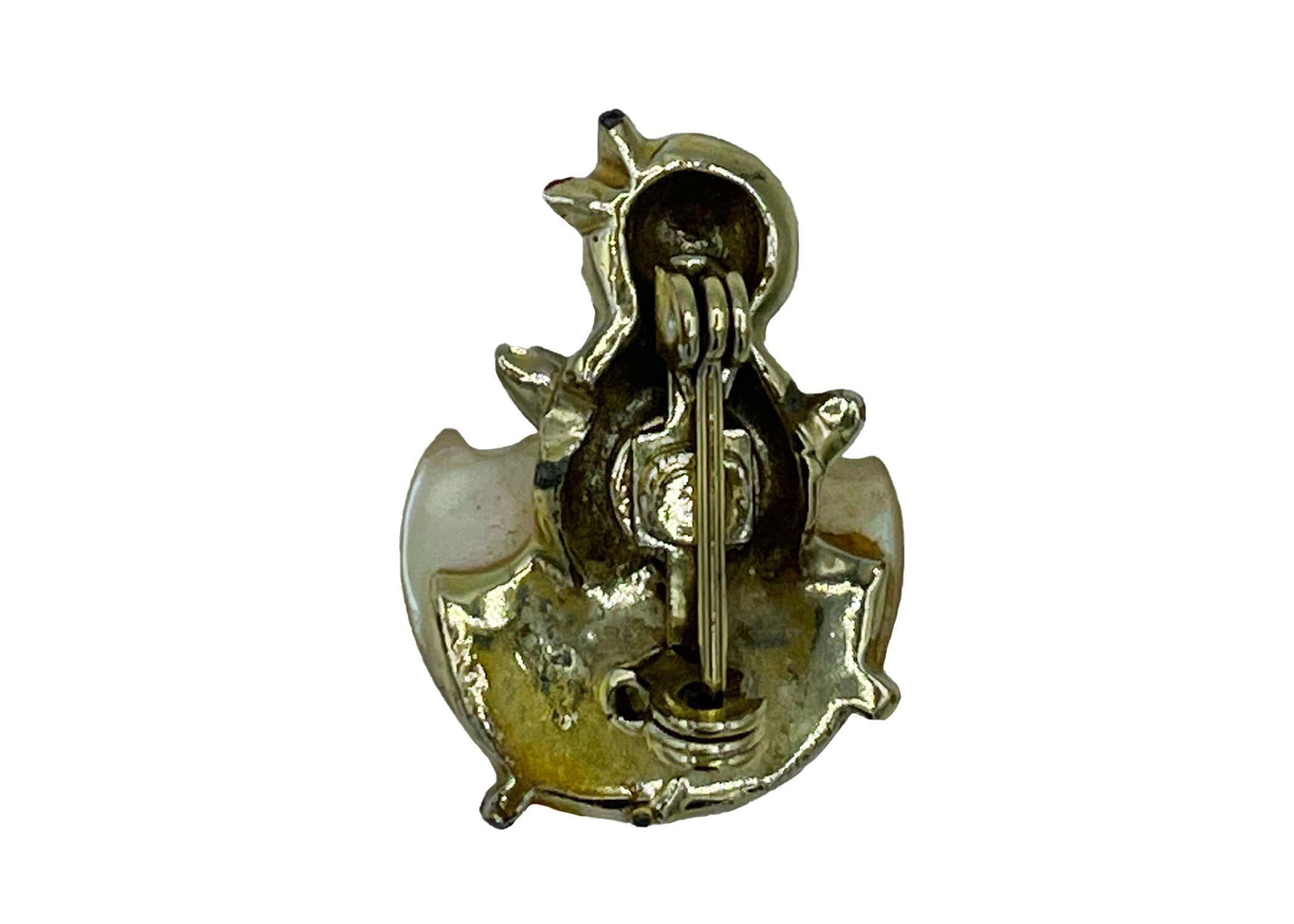 Brooch listed in Etsy as Jewelry Baby Chick in Egg Pin, vintage Easter chick pin for little girl, Easter Baby Chick in Mother of Pearl Egg Brooch, 1960sCollection