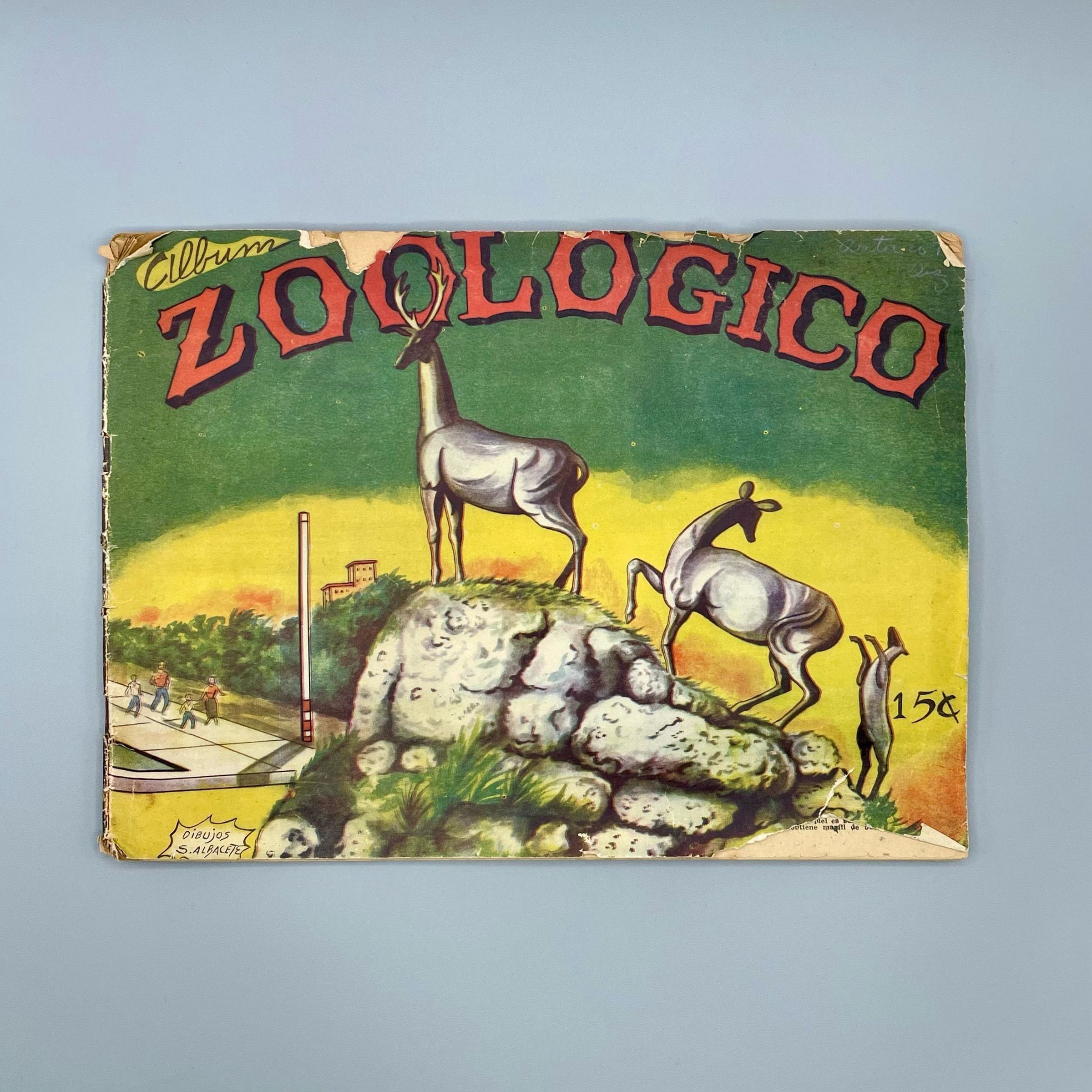 Postcard album for collectors. Zoo themed. Drawings by S. Albacete. Featuring in the front a recreation of the sculpture made by Rita Longa for the entrance of Zoológico de 26, in Havana.Acquisition