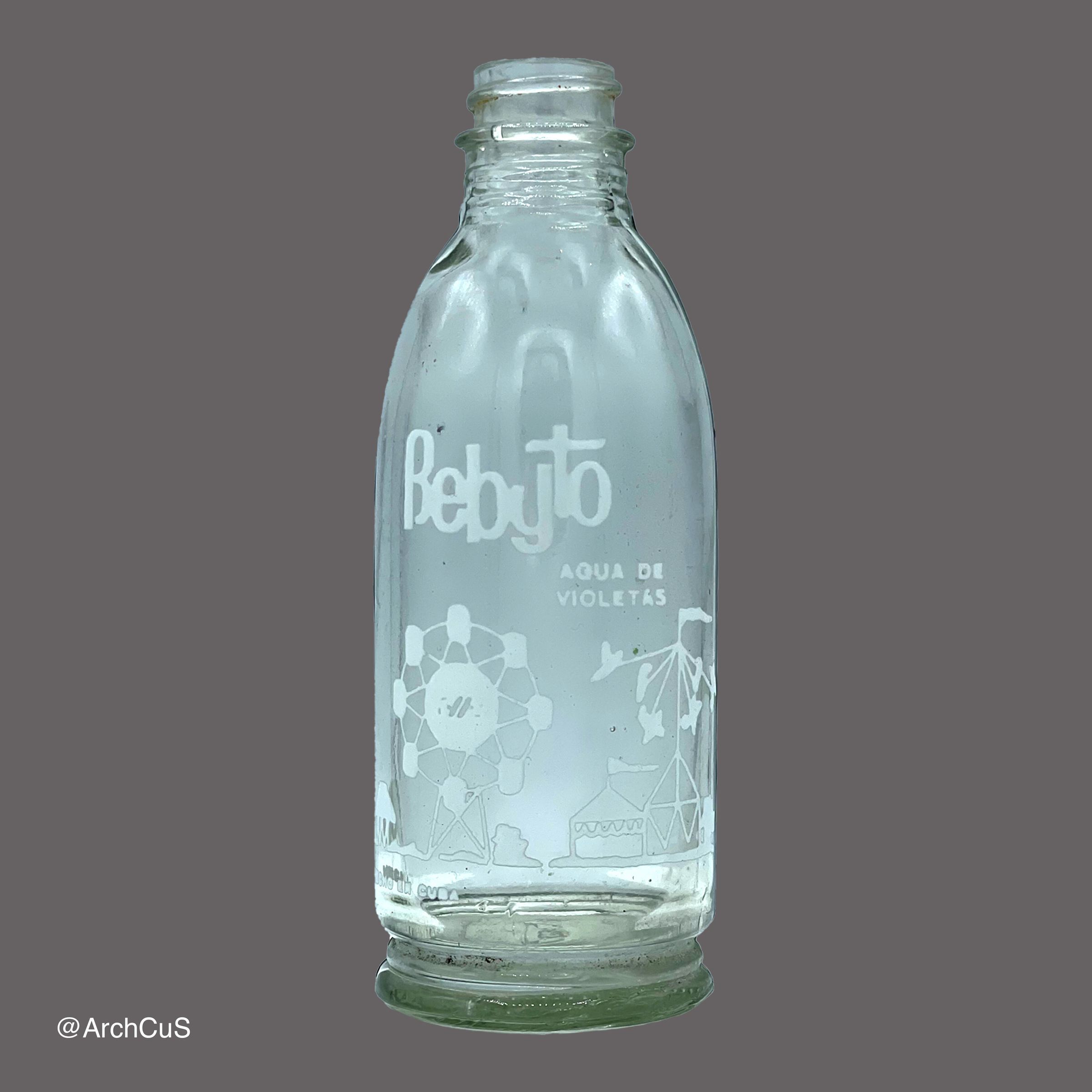Glass bottle originally containing Bebyto agua de violetas cologne for toddlers.Context