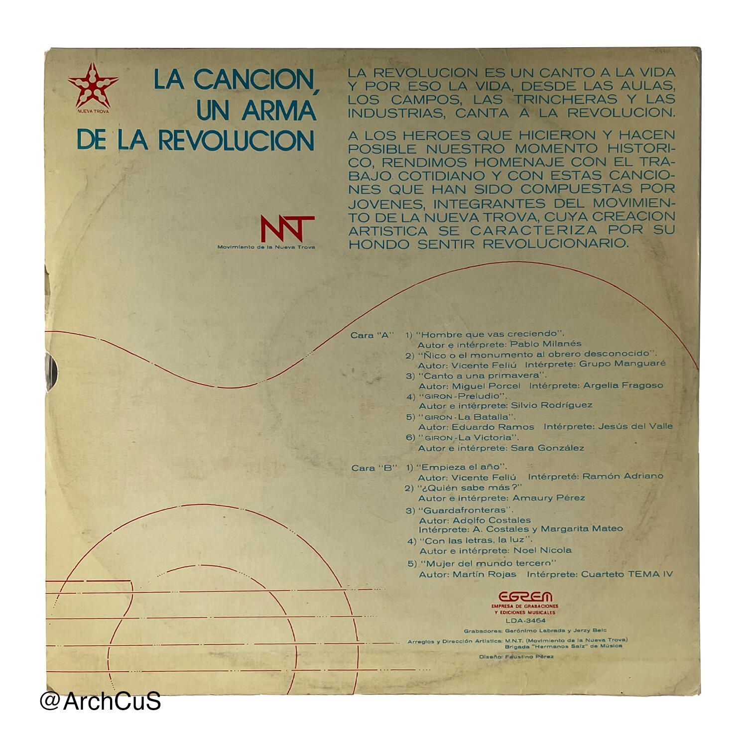 To the heroes who made and make our historical moment possible, we pay tribute with their daily work and with these songs that have been composed by young people, members of the Nueva Trova movement, whose artistic creation is characterized by their deep revolutionary feeling.Parts