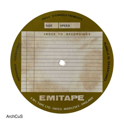 EMI reel-to-reel recording tape in yellow plastic boxUse