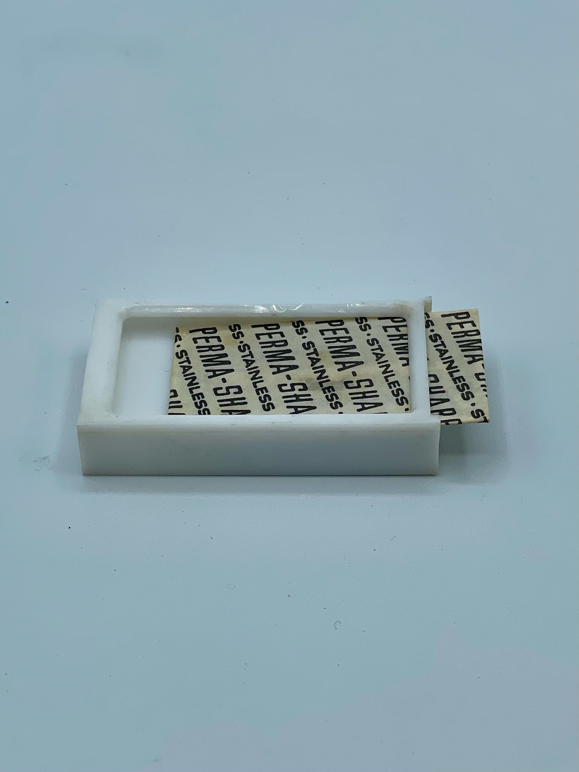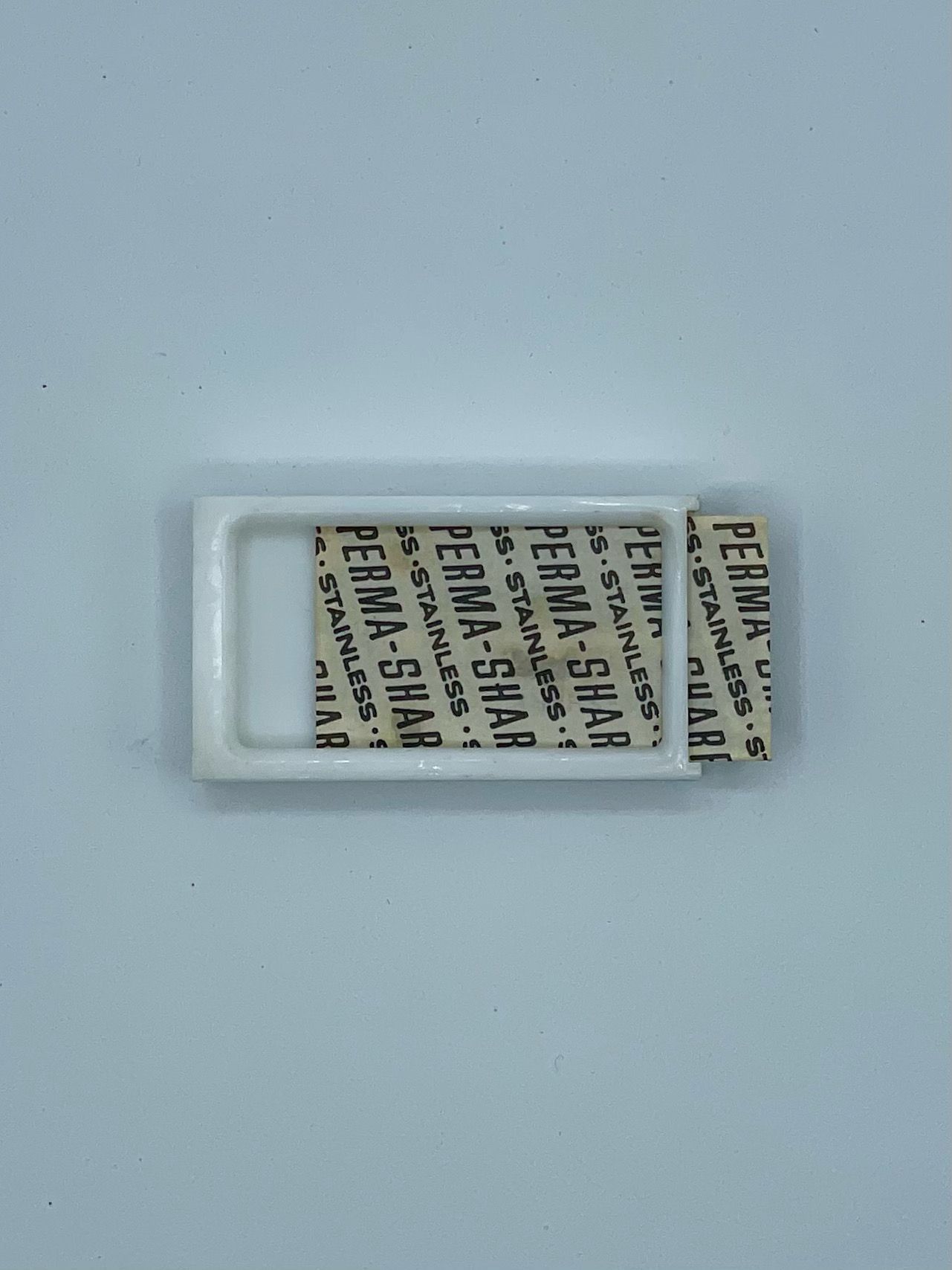 Perma-Sharp double-edge razor blades. Google says they are from the late 1960s to early 1970s. It also says they were made in the UK and in the USSR. They are now sold in o line markets mostly from India.Collection