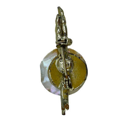 Brooch made of metal, mother of pearl, and enamel.Item Type